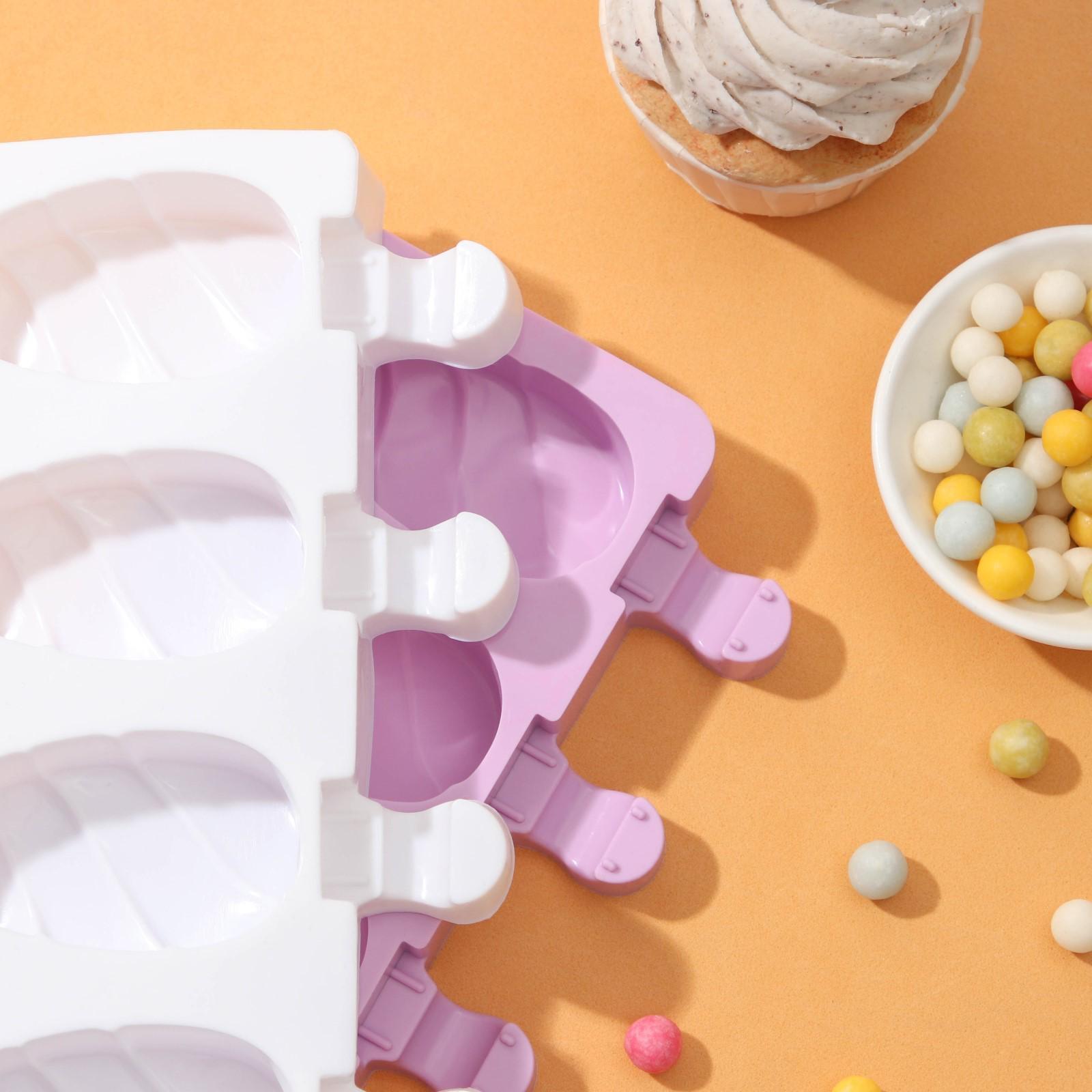 УЦЕНКА Форма для мороженого «Клубника со сливками», 19,5×11,5 см, 4 ячейки (6,7×3,7 см), цвет МИКС