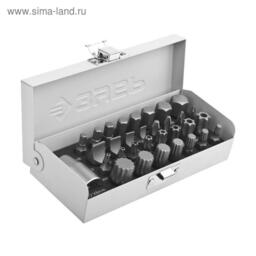 Набор бит "ЗУБР",специальные,металлический бокс, PH, SL, HEX, TORX, SPLINE, 32 предмета