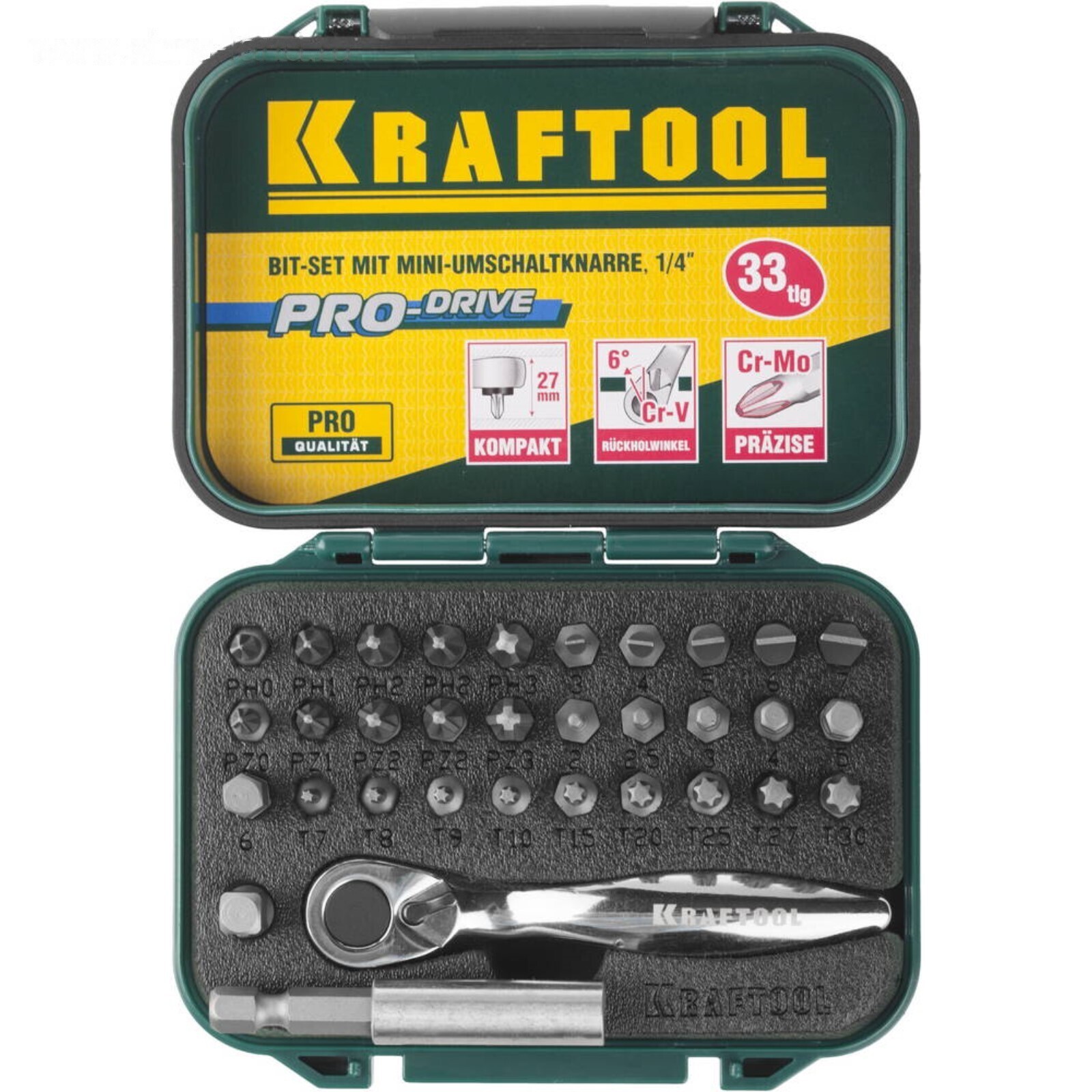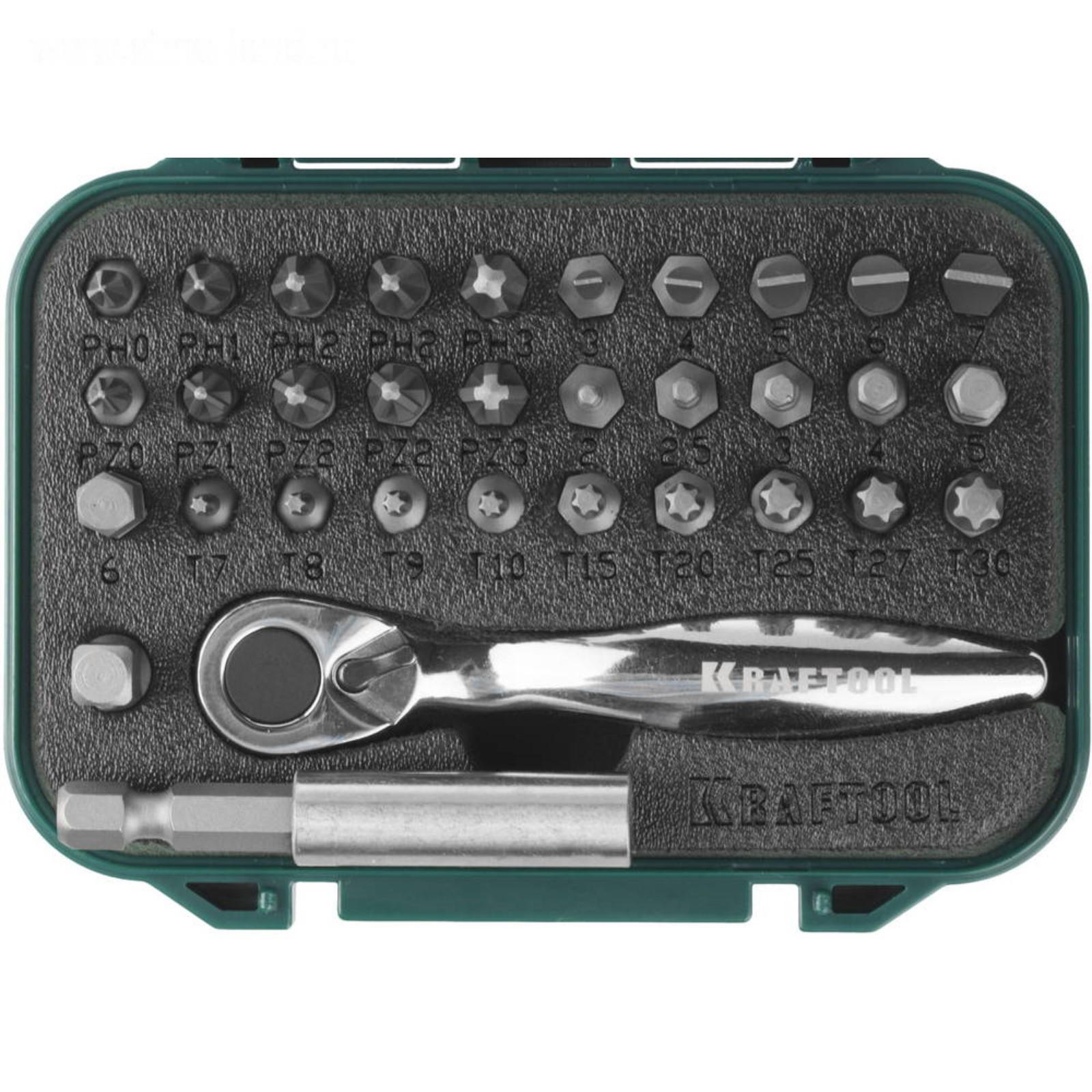 Набор бит KRAFTOOL 26157-H33, мини трещотка, 1/4", 33 предмета