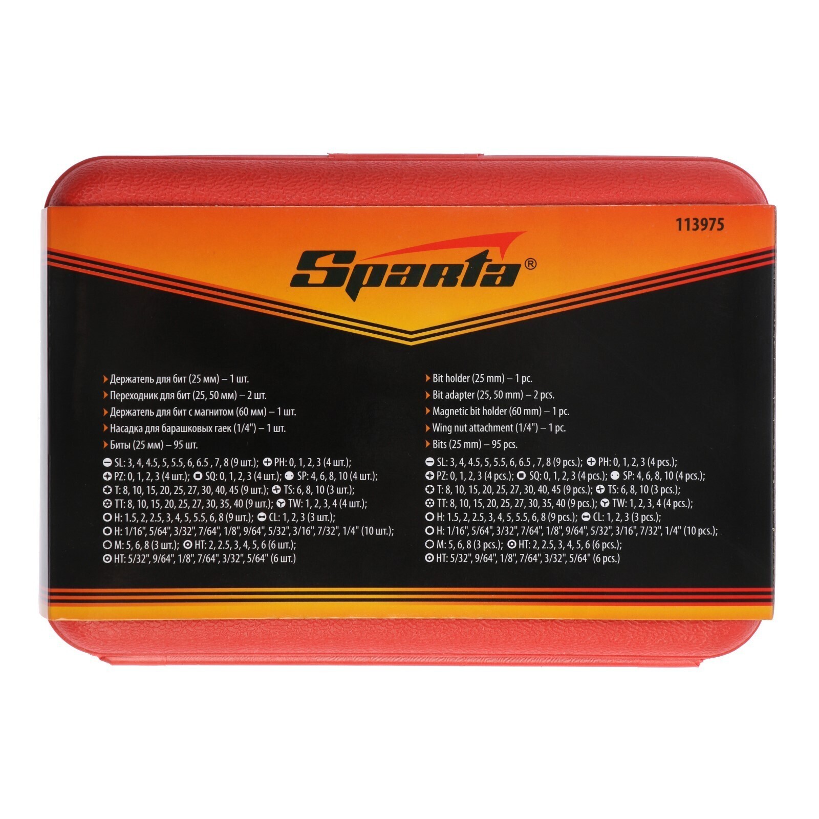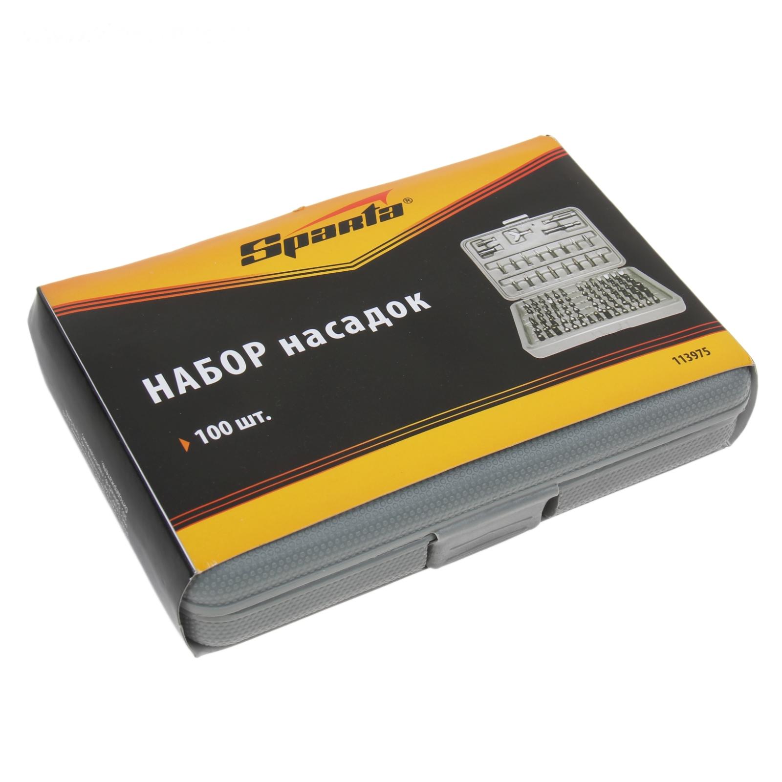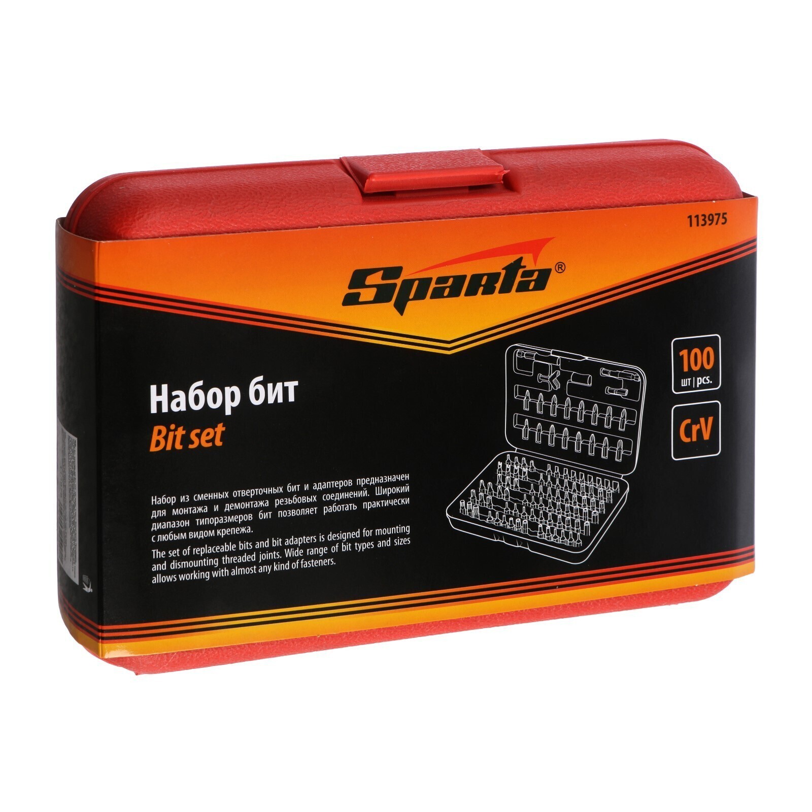 Набор бит Sparta, 100 шт, адаптеры для бит, CrV, в пластиковом боксе