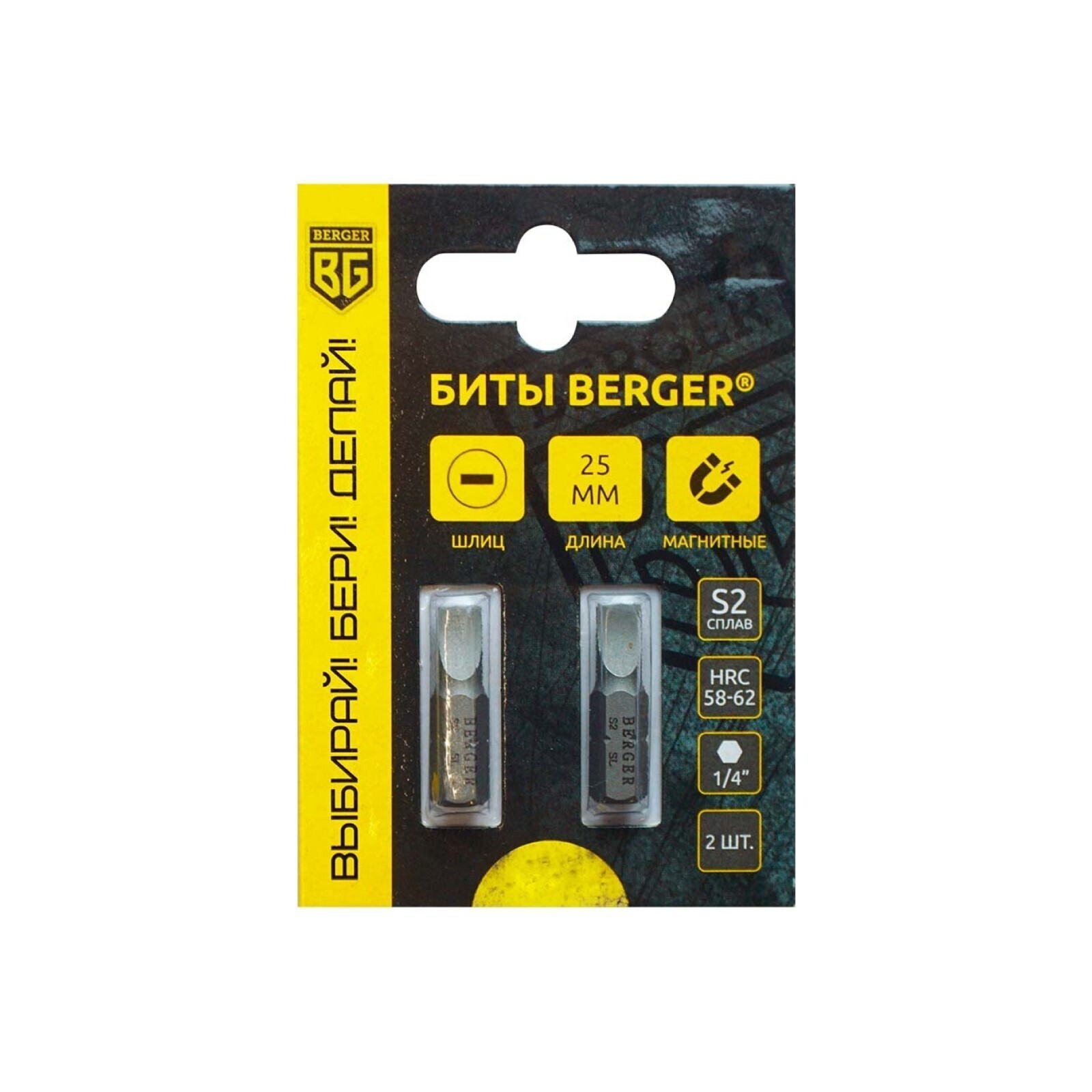 Биты магнитные BERGER BG2383, SL1.2x6.5x25 мм, 2 шт., S2