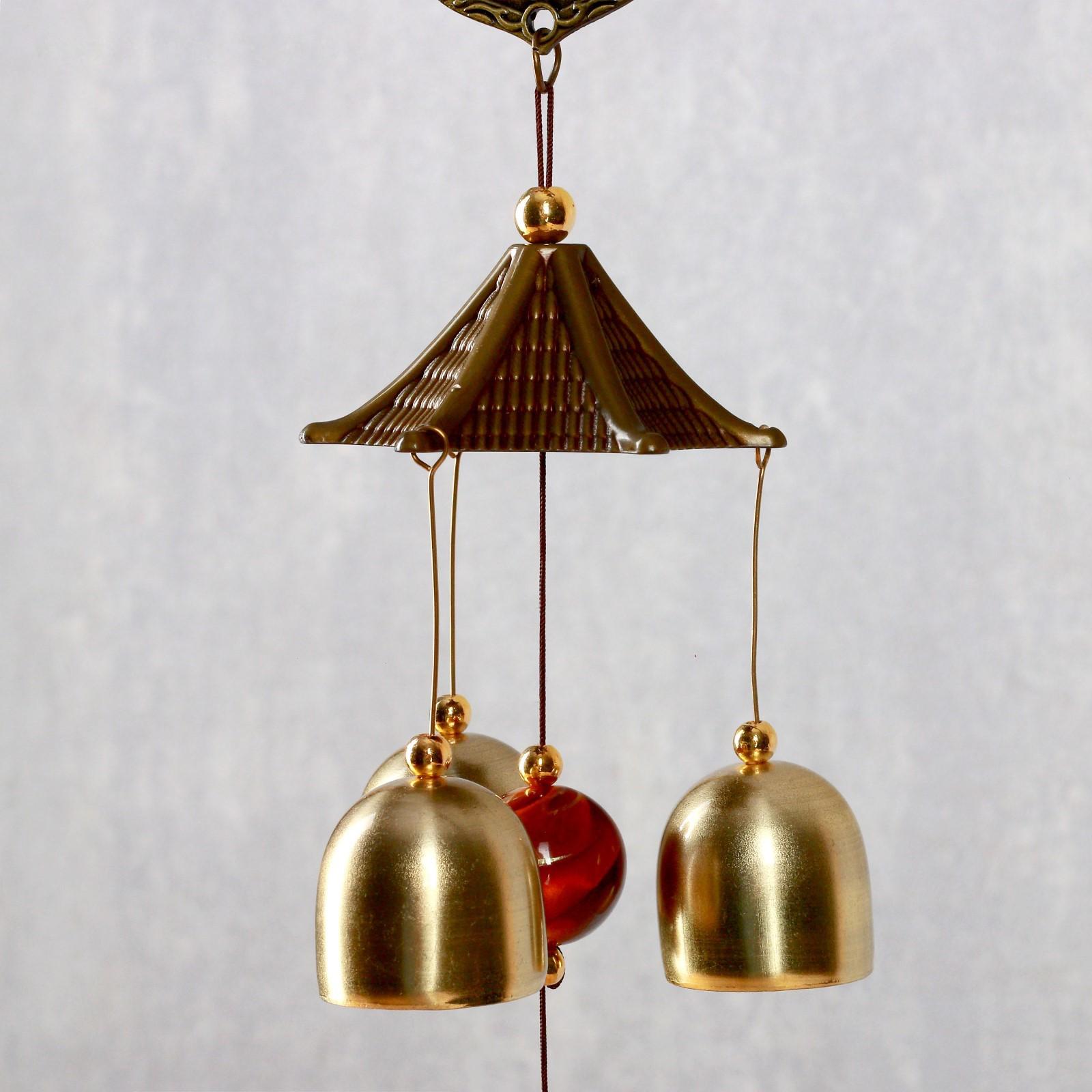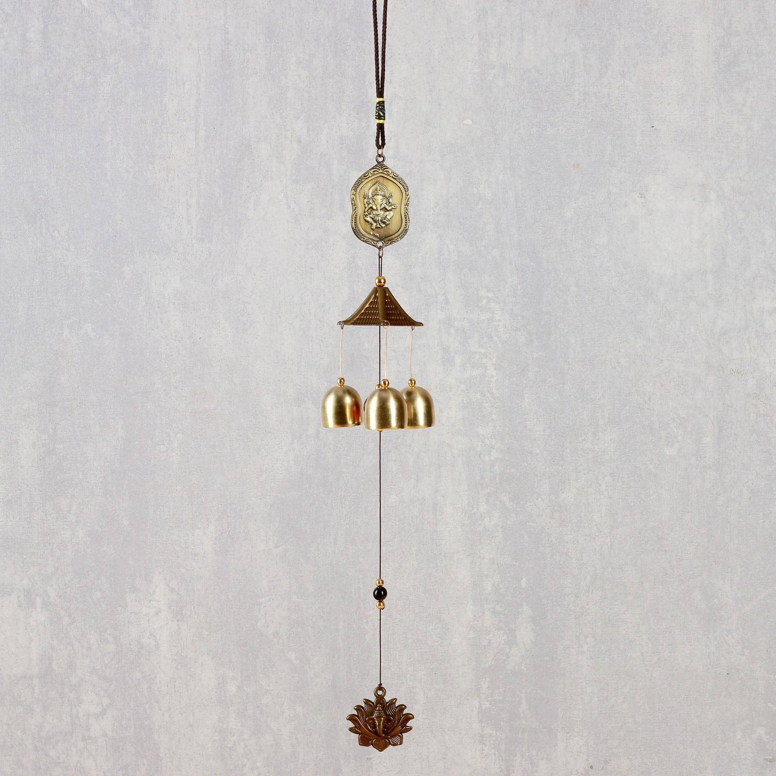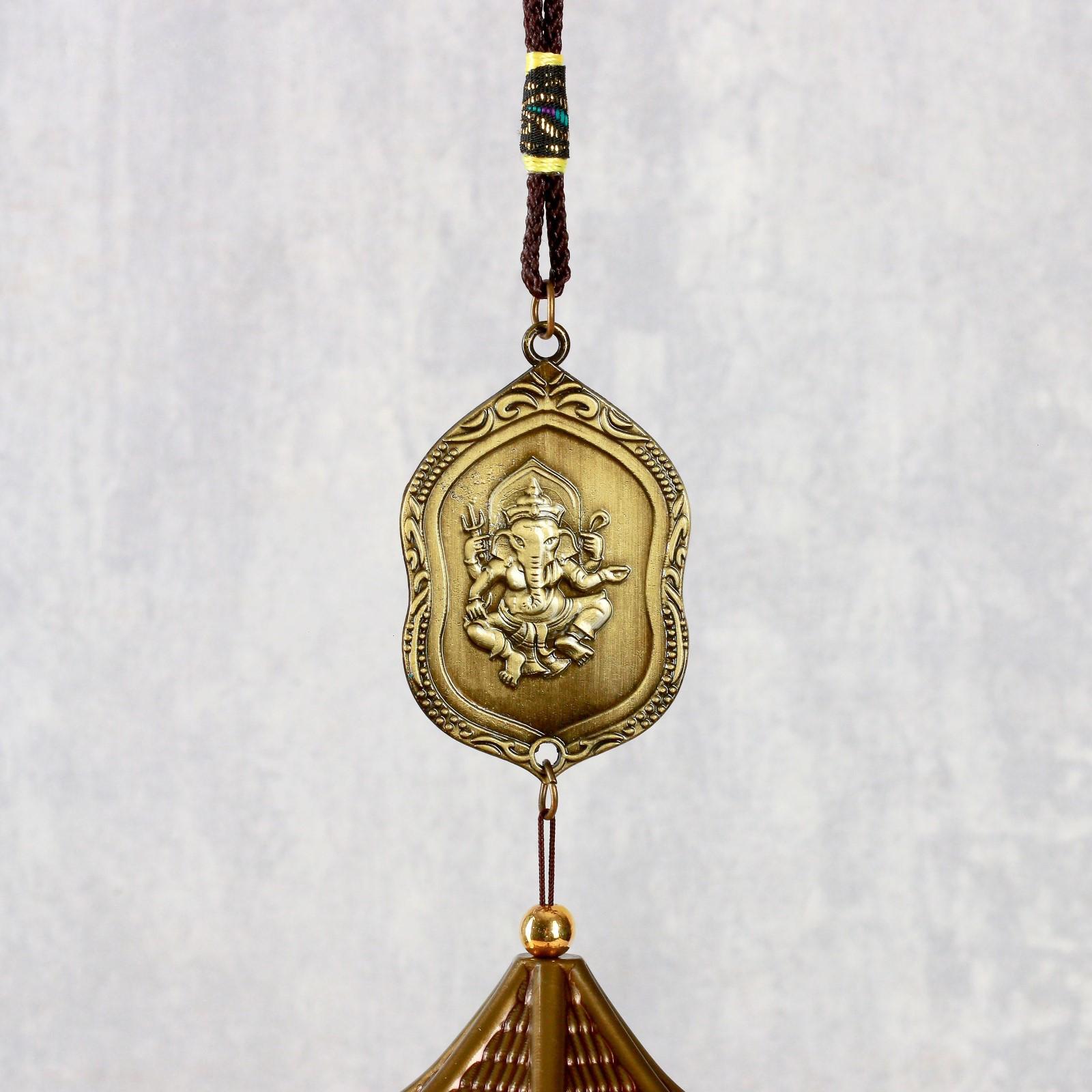 Музыка ветра металл "Ганеша на медальоне" 3 колокольчика 43 см