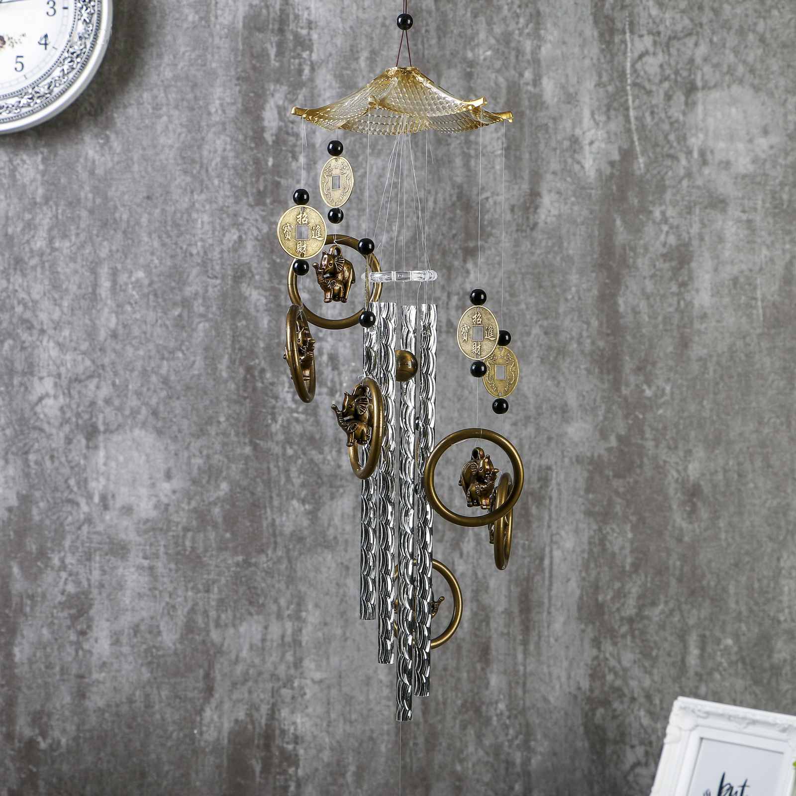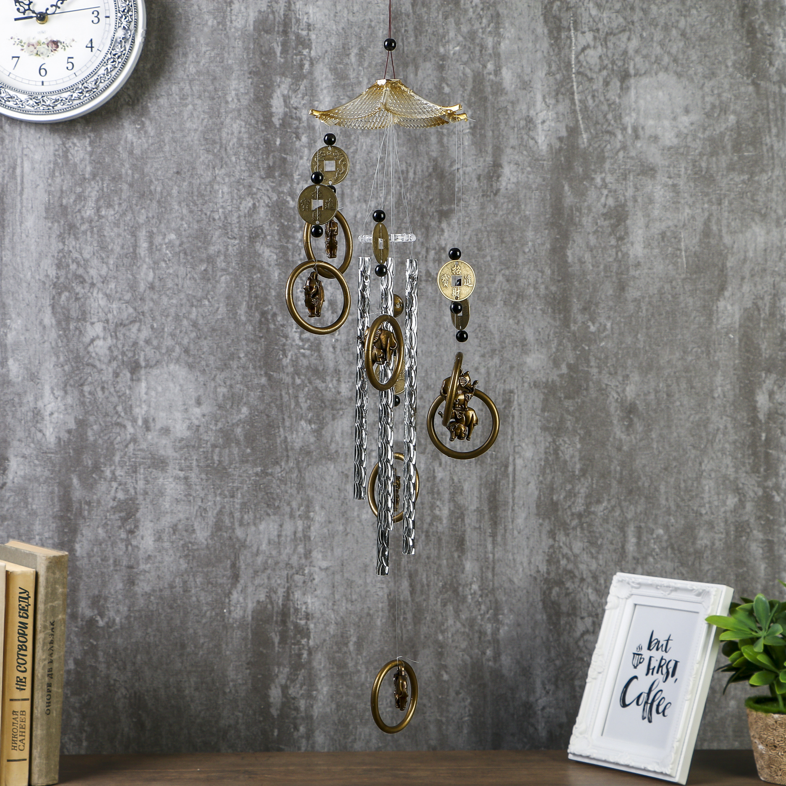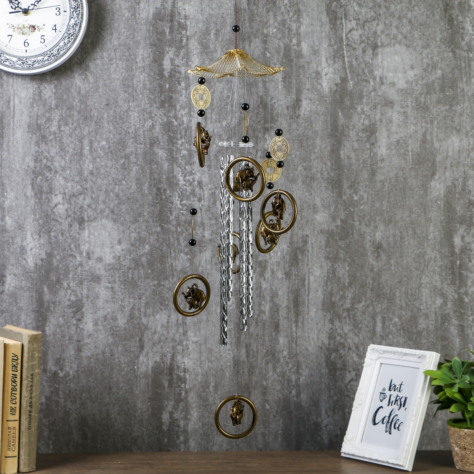Музыка ветра пластик "Слон в круге" 4 трубки 7 фигурок 70 см