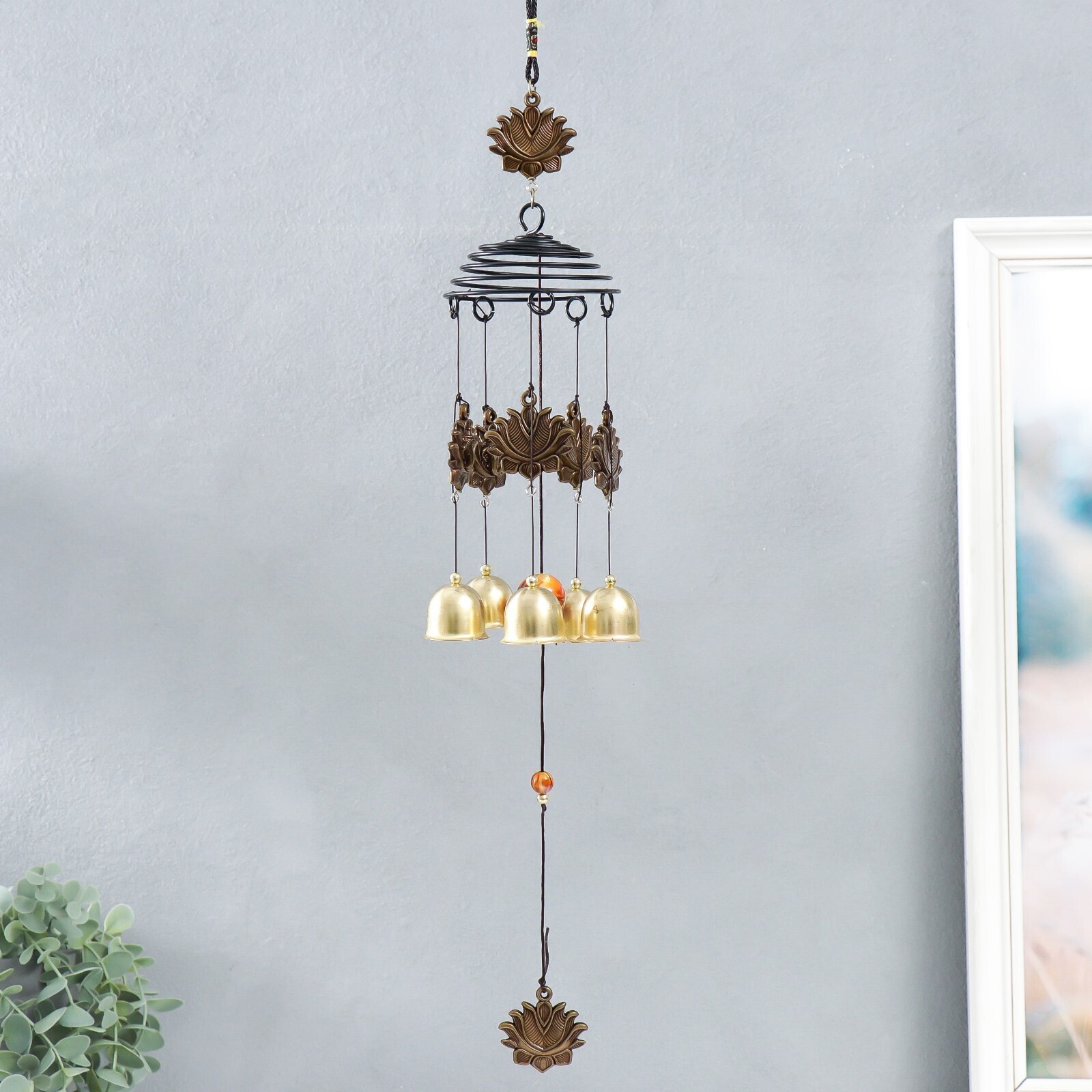 Музыка ветра металл "Спираль. Лотосы" 5 колокольчиков 46 см