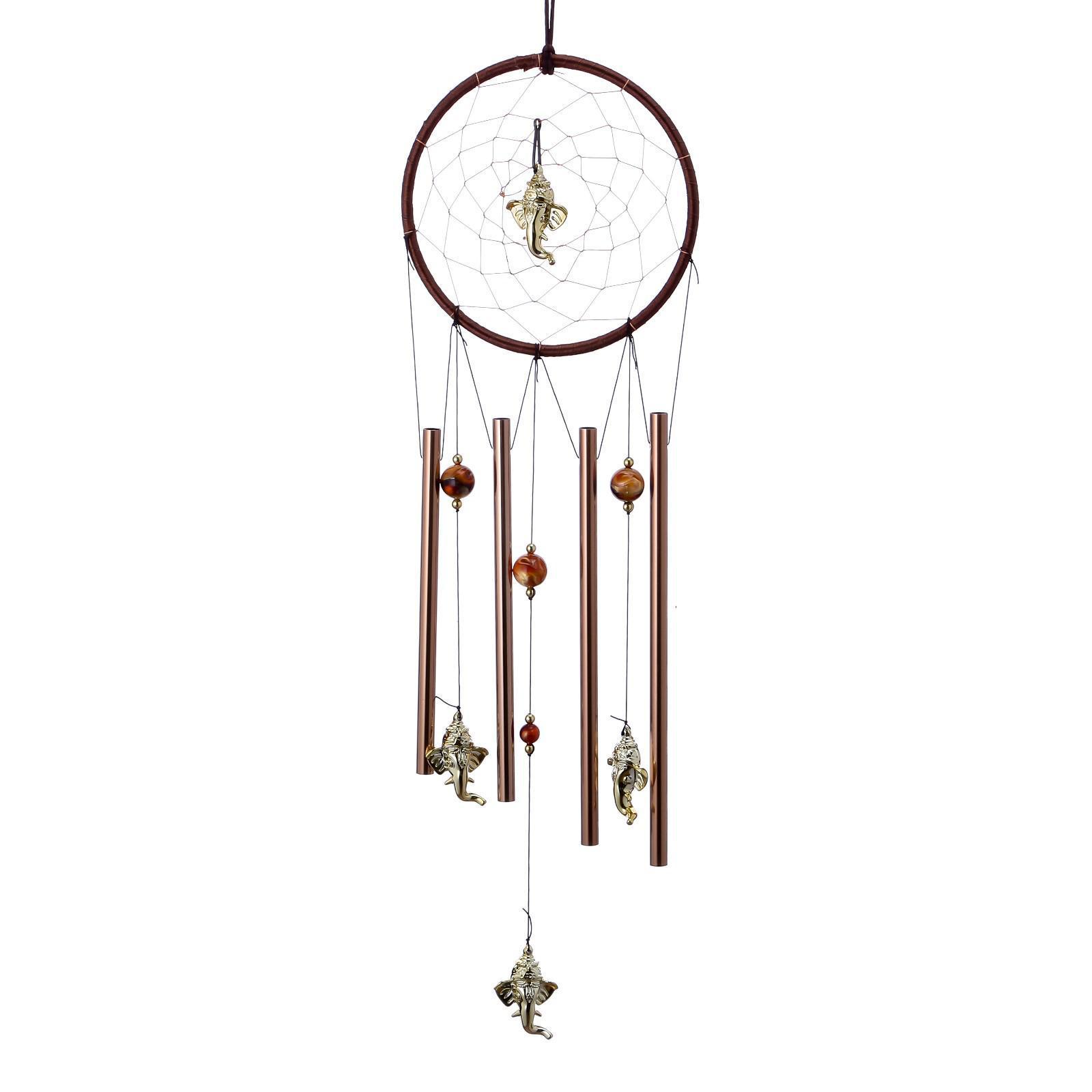 Музыка ветра+ловец снов "Голова Ганеши в круге" 4 трубки 52 см