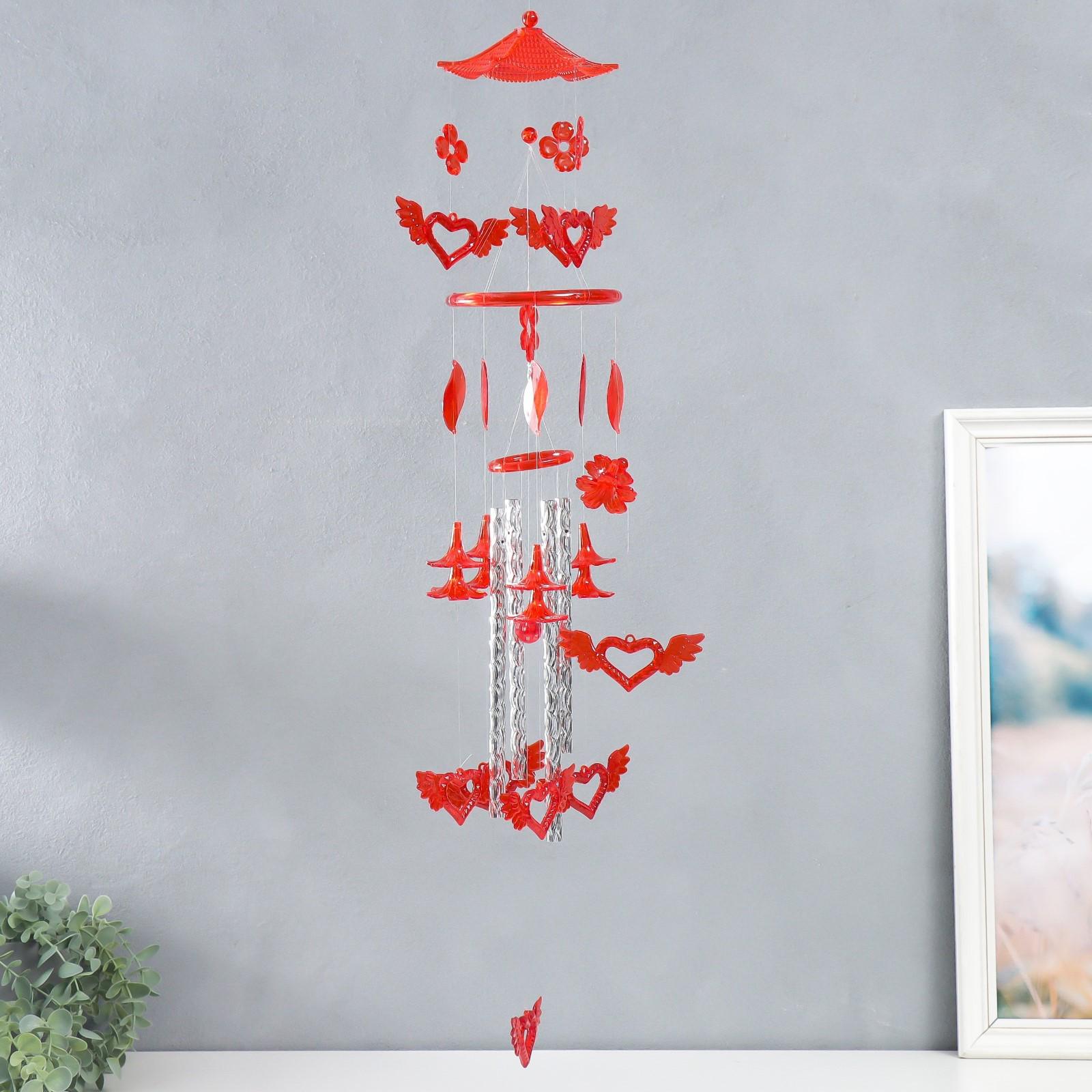 Музыка ветра пластик "Крылатые сердечки" 4 трубки 78 см