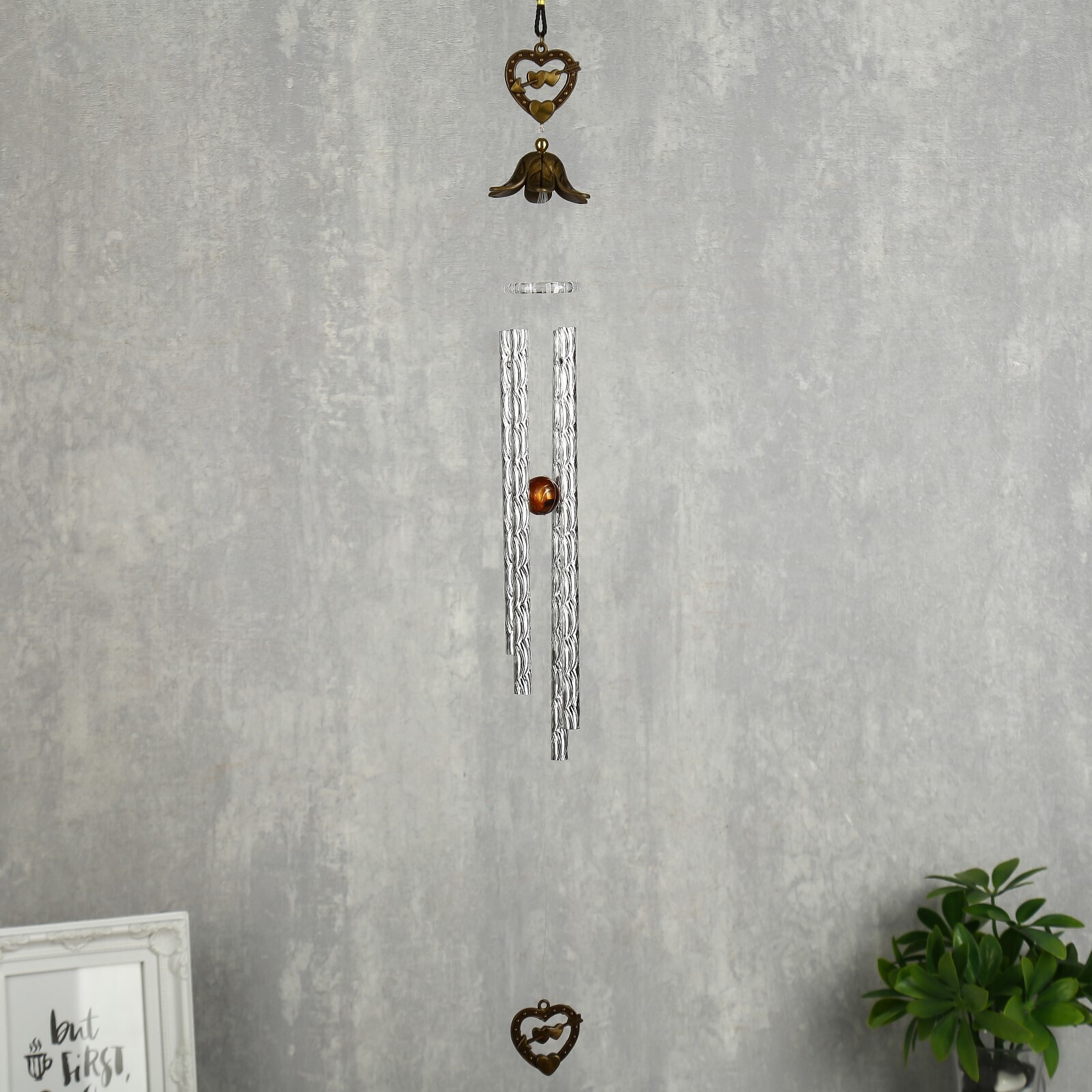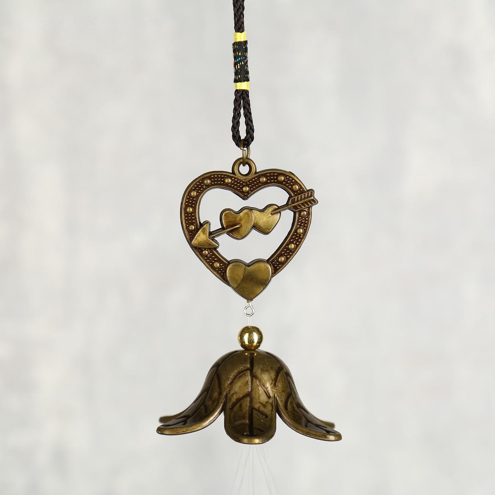 Музыка ветра металл "Двойное сердце со стрелой" 4 трубочки 56 см