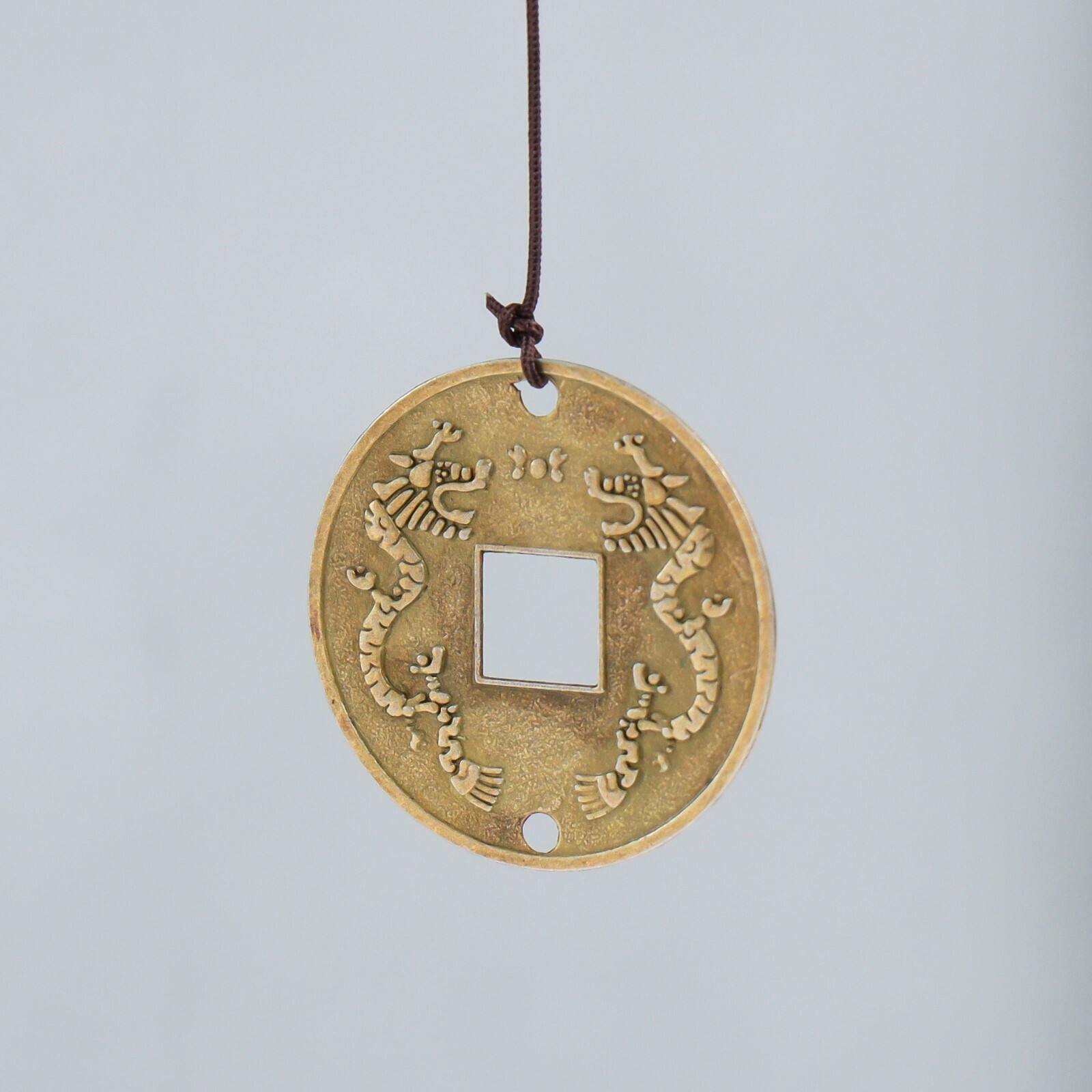Музыка ветра металл "Дракон и монета" 3 колокольчика 30 см