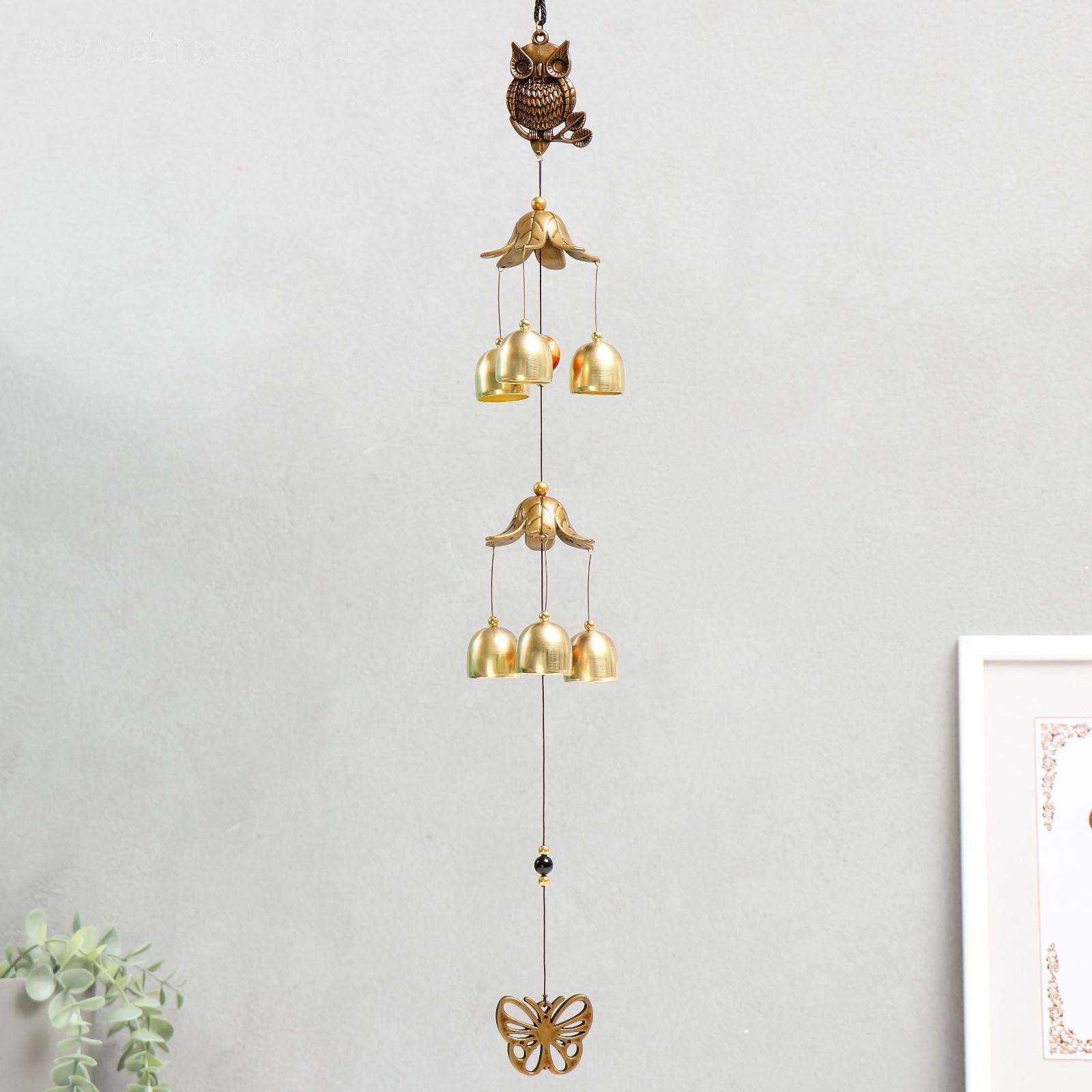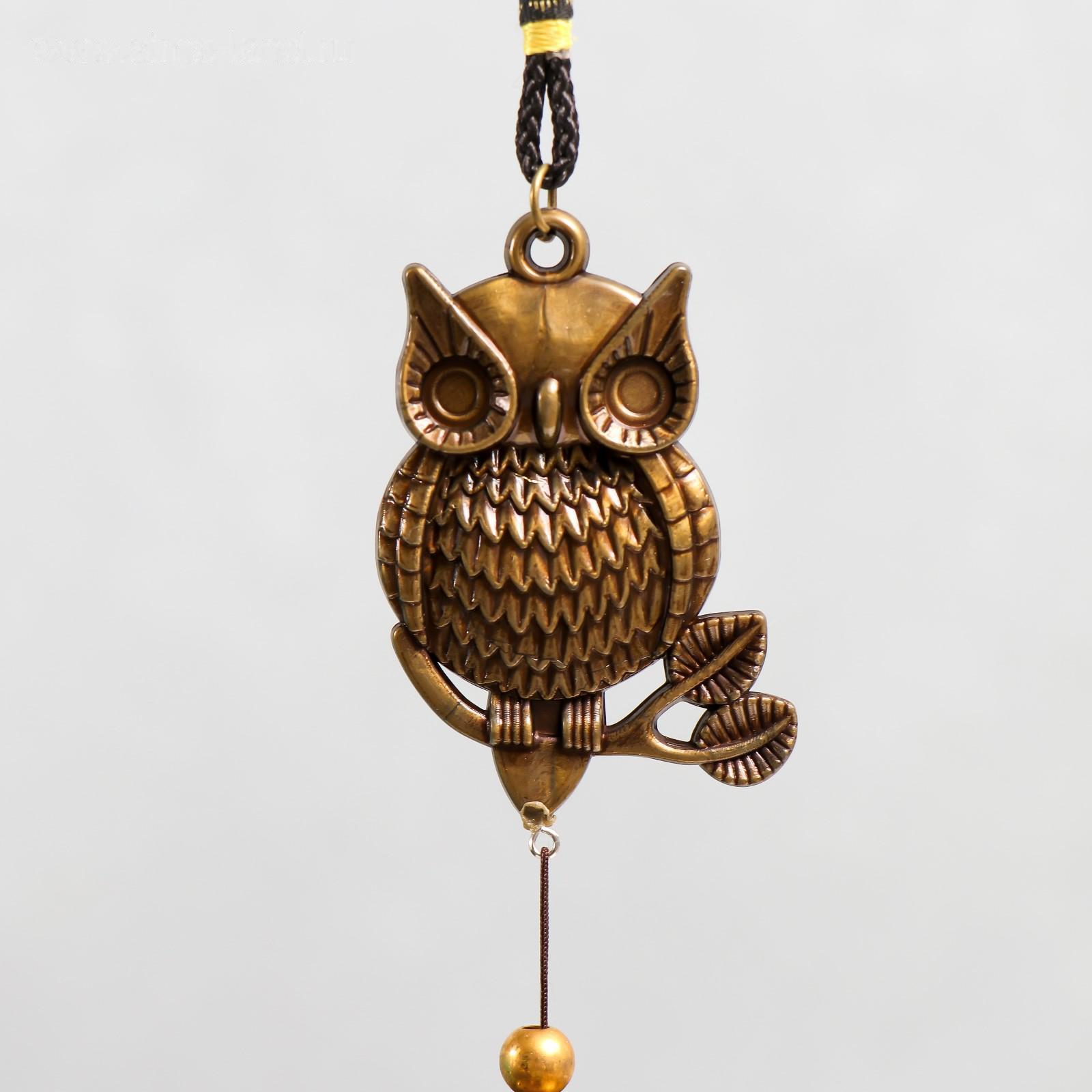 Музыка ветра металл "Филин на ветке" 6 колокольчиков 60 см