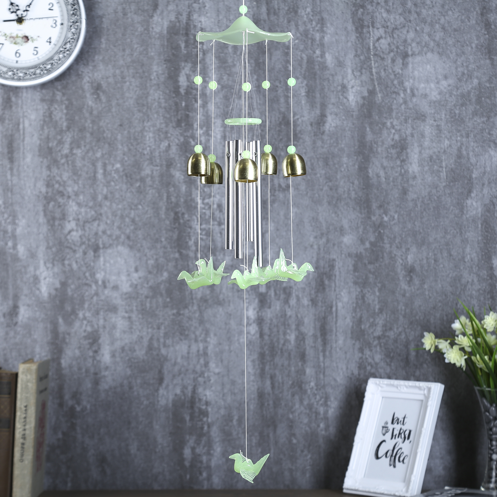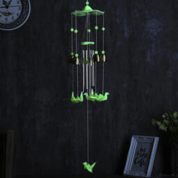 Музыка ветра пластик, металл "Птички" фосфорная 4 трубки, 5 колокольчиков 60 см