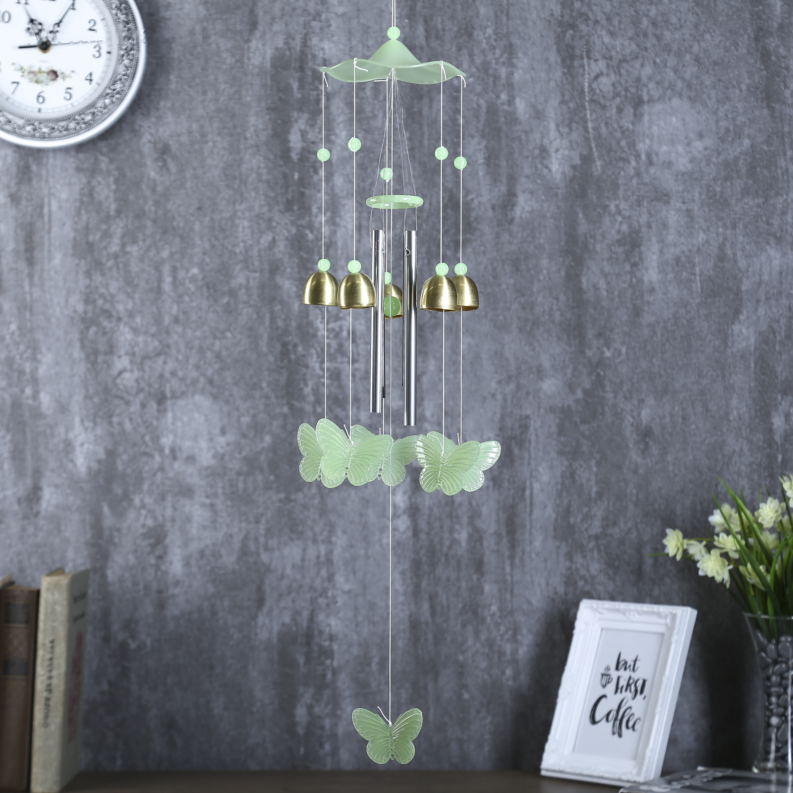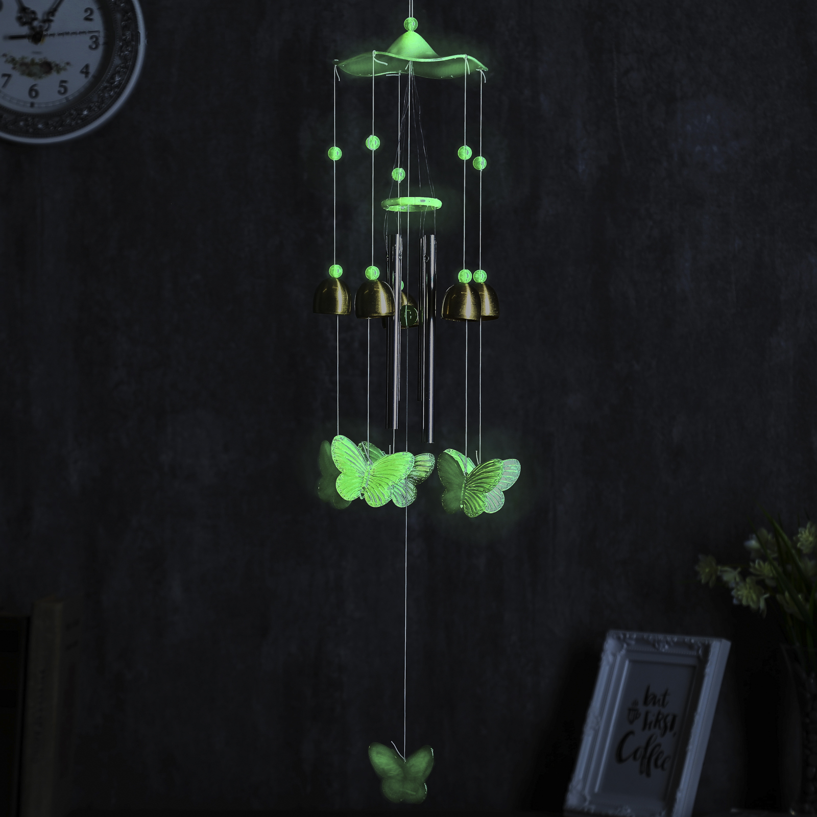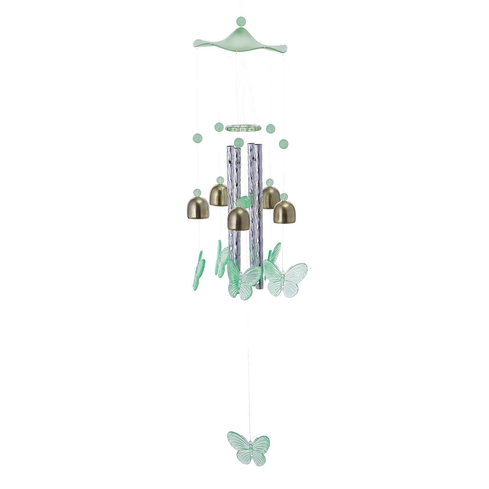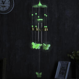 Музыка ветра пластик, металл "Бабочки" фосфорная 4 трубки, 5 колокольчиков 60 см