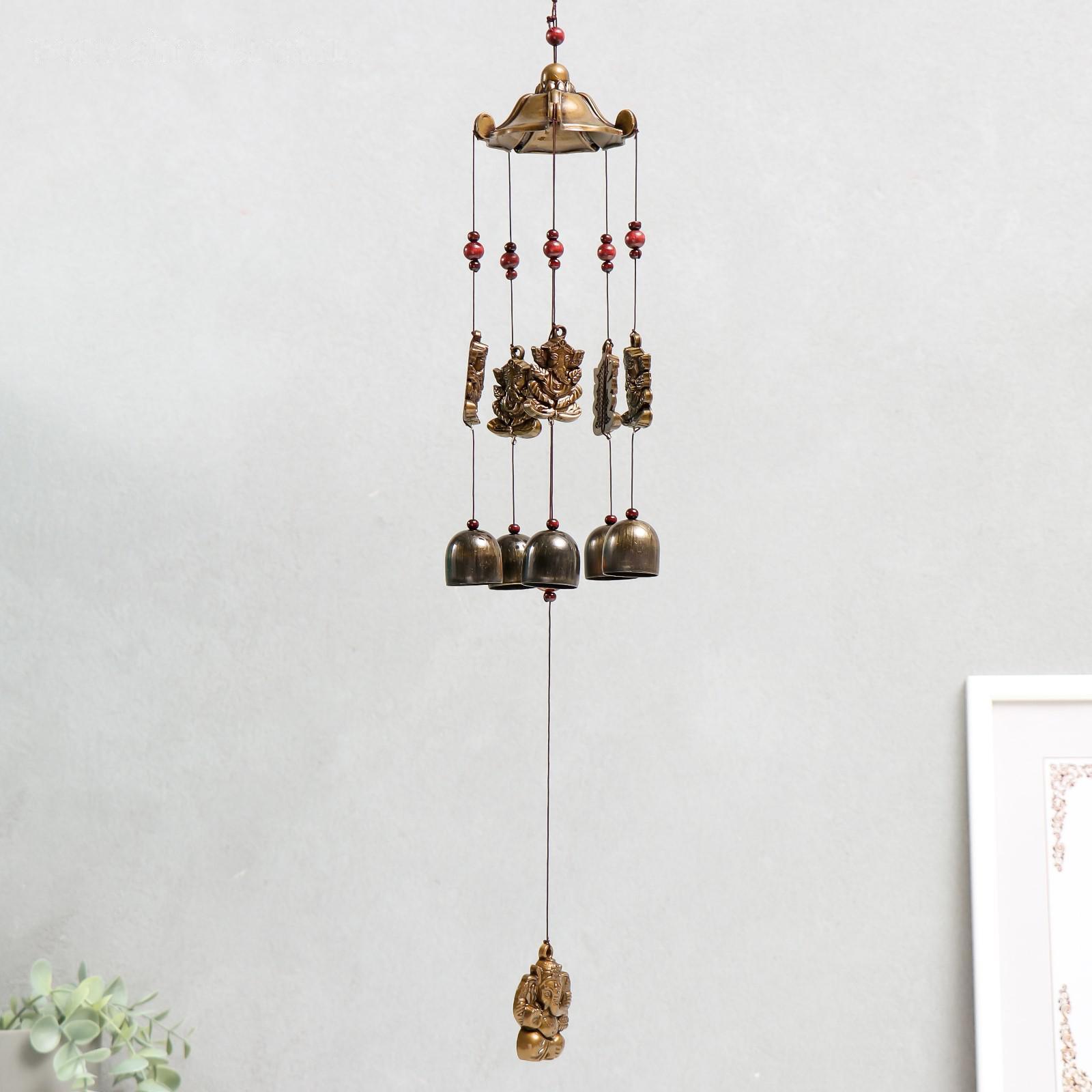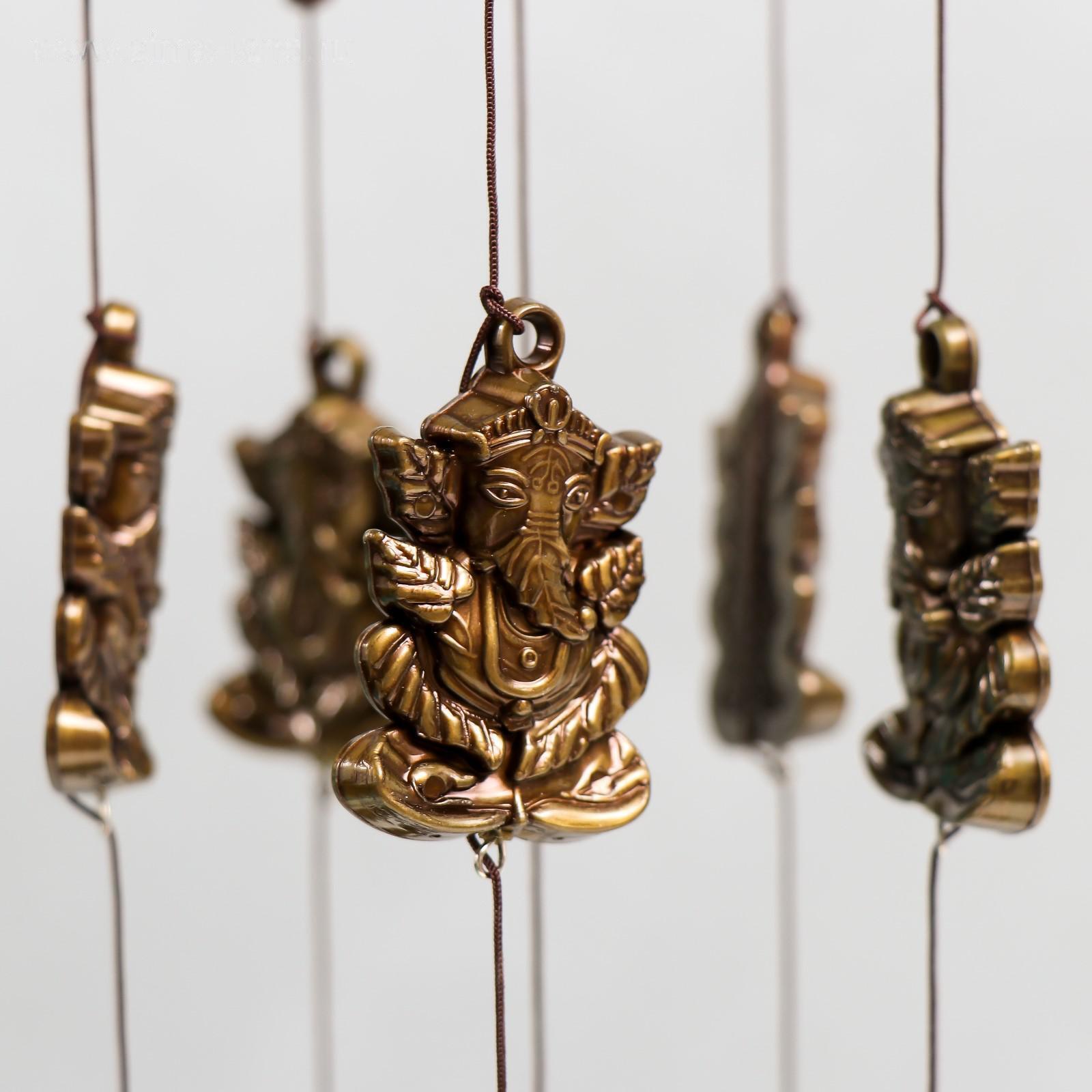 Музыка ветра металл 5 колокольчиков 6 фигурок "Ганеша" h=54 см