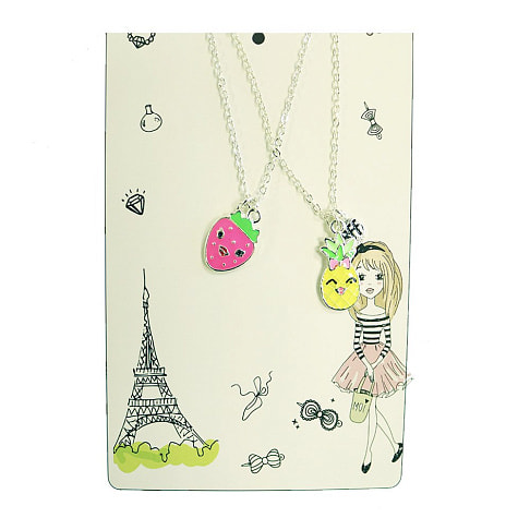 Комплект подвесок в виде ярких фруктов понравится девочкам, придаст наряду веселья и озорства. Подвески на тоненькой металлической плетеной цепочке. Подвески можно чередовать, выбирая, какой фрукт больше подходит под настроение.