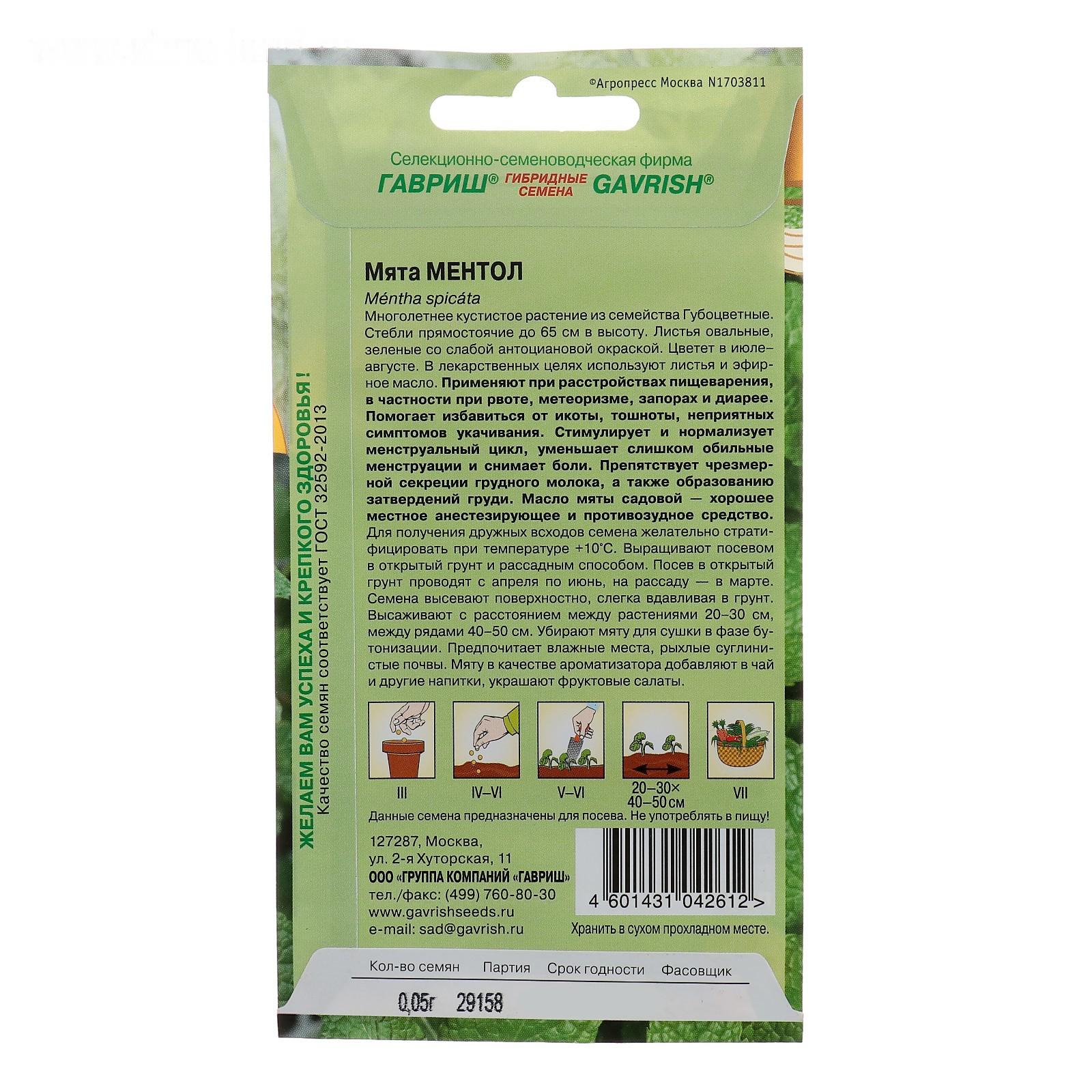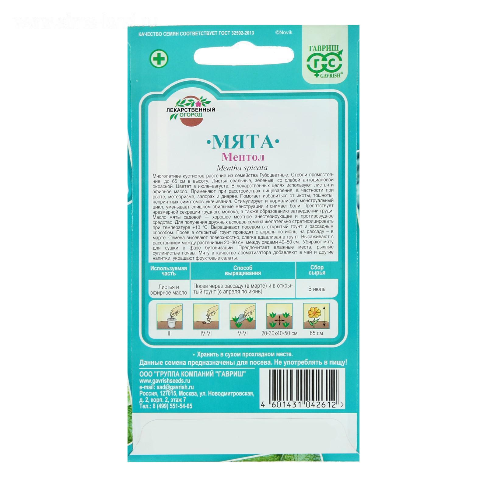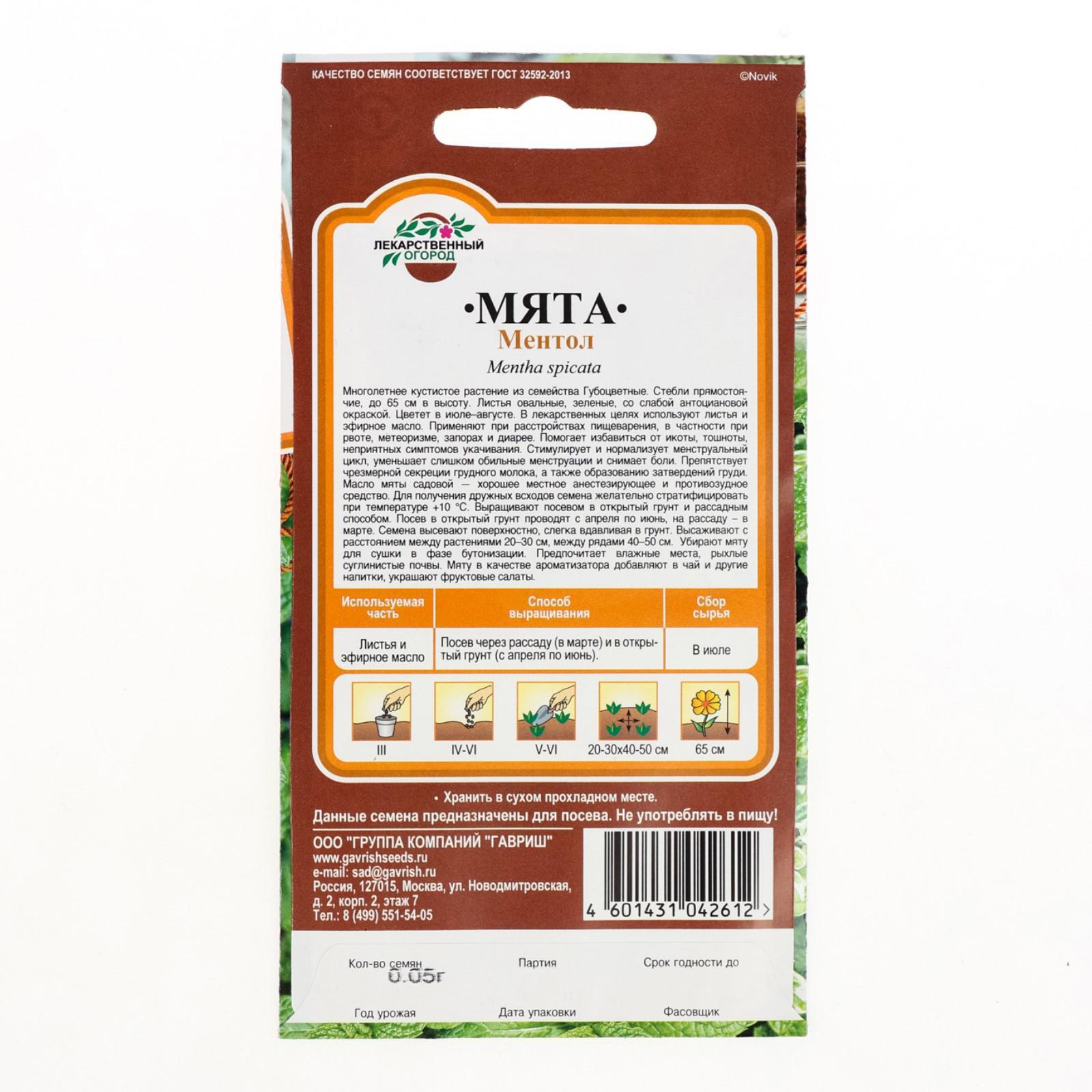 Мята садовая «Ментол» — многолетнее кустистое растение семейства губоцветных. Стебли прямостоячие, достигают 65 см в высоту. Листья овальные, зелёные со слабой антоциановой окраской. Цветёт в июле — августе. Цветки мелкие, сиреневые, собраны в вытянутое соцветие.