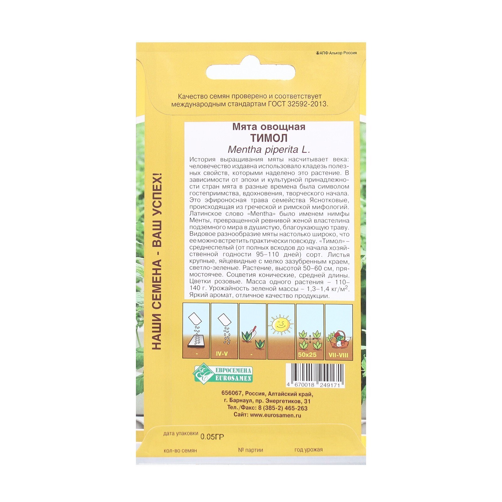 «Тимол»- среднеспелый (от полных всходов до начала хозяйственной годности 95-110 дней) сорт.