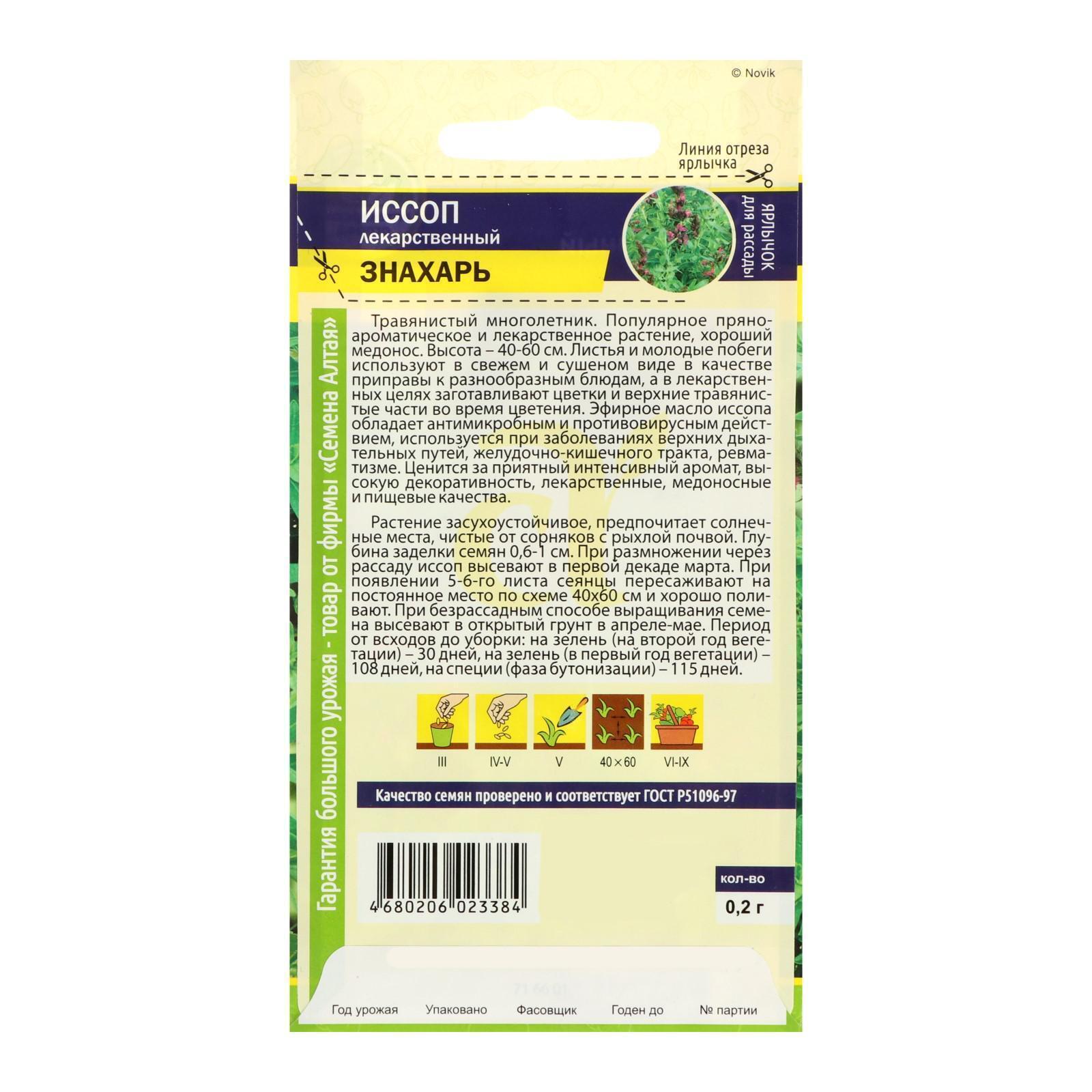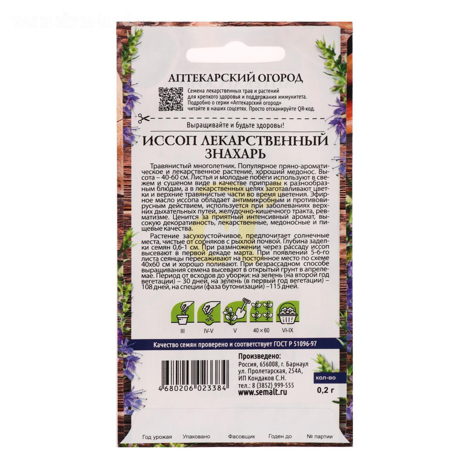 Семена Иссоп "Знахарь", лекарственный, 0,2 г