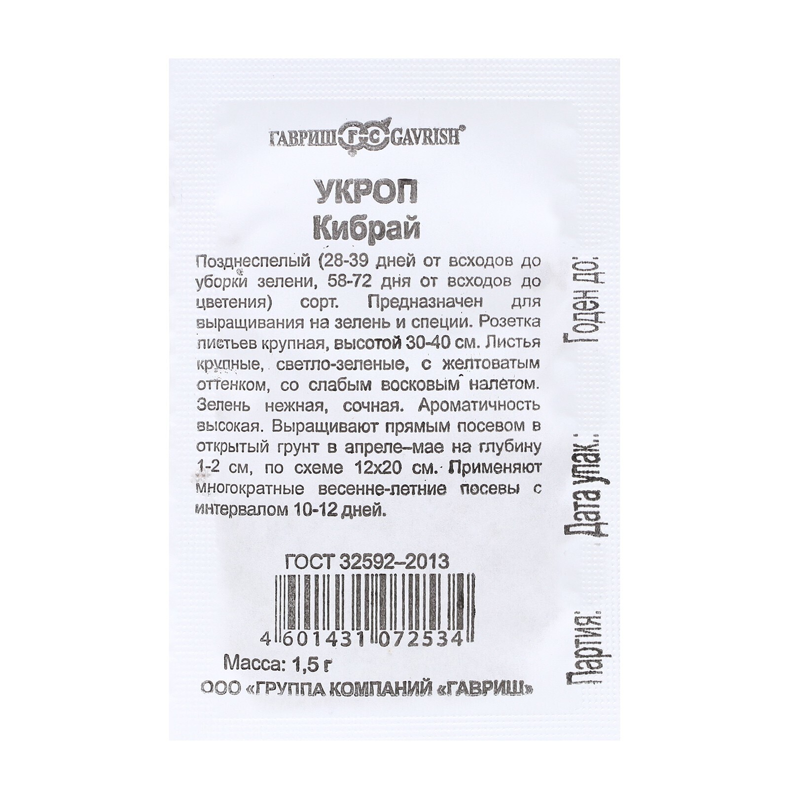 Семена Укроп Кибрай 1,5 г б/п Уд. с.