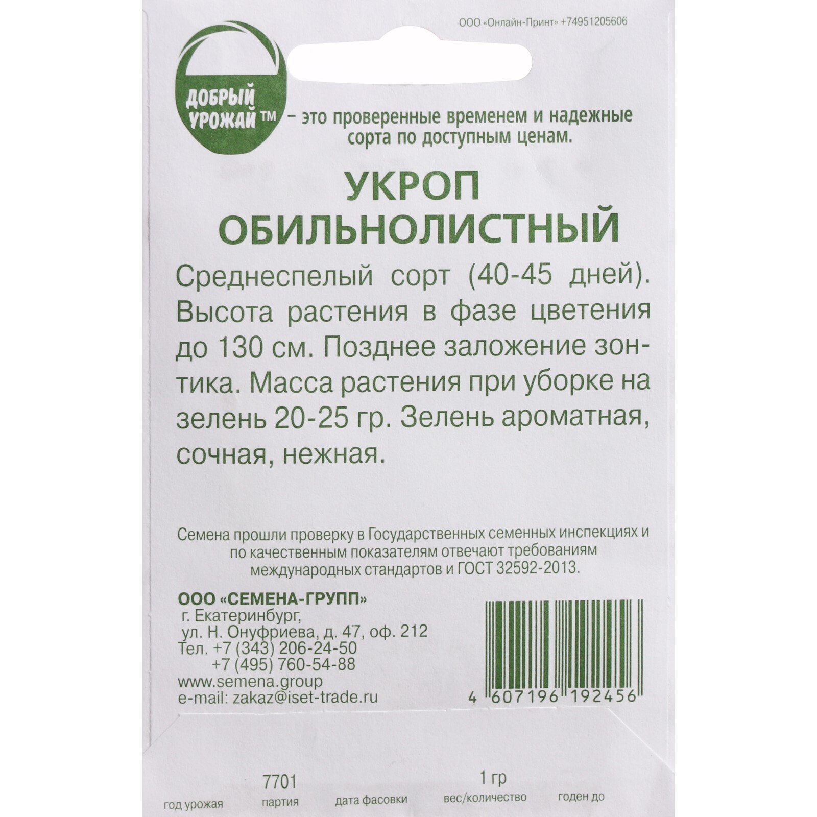 Среднеспелый (40–45 дней от всходов до получения урожая) сорт, формирует мощный облиственный куст. Долго не образует зонтик. Лист среднего размера, сильнорассеченый, зеленый с восковым налетом. Зелень сочная, ароматная, нежная. Масса одного растения при уборке на зелень 20–25 г. Урожайность на зелень 3,0–3,4 кг\м2. Рекомендуется для сушки, замораживания, приготовления разнообразных приправ, засолки и маринования. Посев в грунт — конец апреля–начало мая. Применяют многократные весенне-летние посевы с интервалом 10–12 дней. Глубина заделки семян 1–2 см.