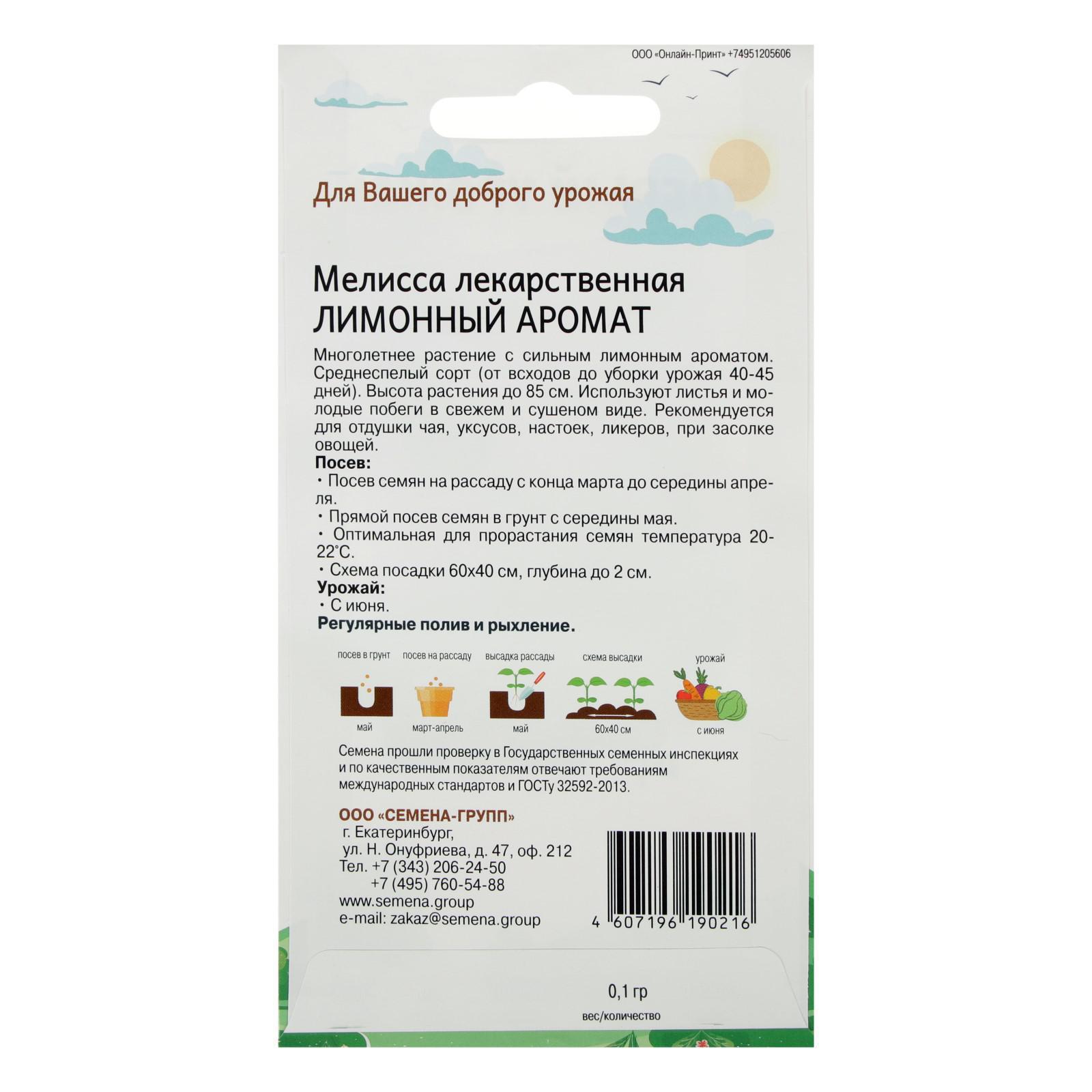 АГРОТЕХНИКА: морозоустойчивое растение, хорошо зимует в открытом грунте. Предпочитает умеренно увлажненные, легкие и плодородные почвы. Выращивать мелиссу можно семенами в открытый грунт практически в любое время: весной, летом или под зиму; через рассаду, черенками и делением куста – весной. Посев на рассаду в марте – апреле, высадка в грунт с конца мая. Схема посадки 30х40 см. Сбор зеленой массы начинают со второго года развития растения, делая за сезон две-три срезки молодых побегов вместе с листьями до начала цветения. Уход заключается в рыхлении, прополках, поливах и прореживании при необходимости. На одном месте выращивается в течение 3-5 лет.