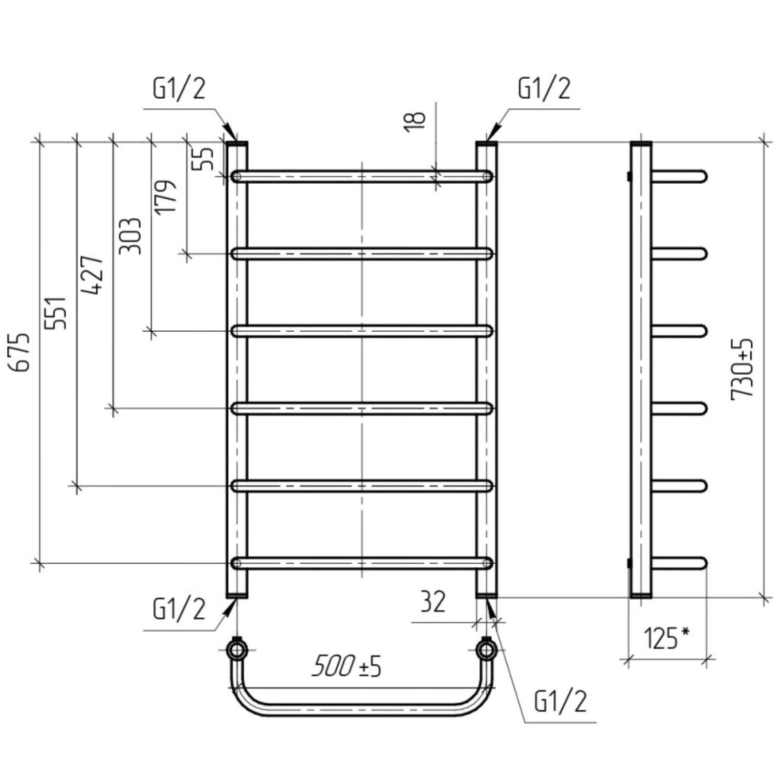 Полотенцесушитель водяной "ТЕРА" МОСТ ПСБ-09-08, 500х800 мм, хром