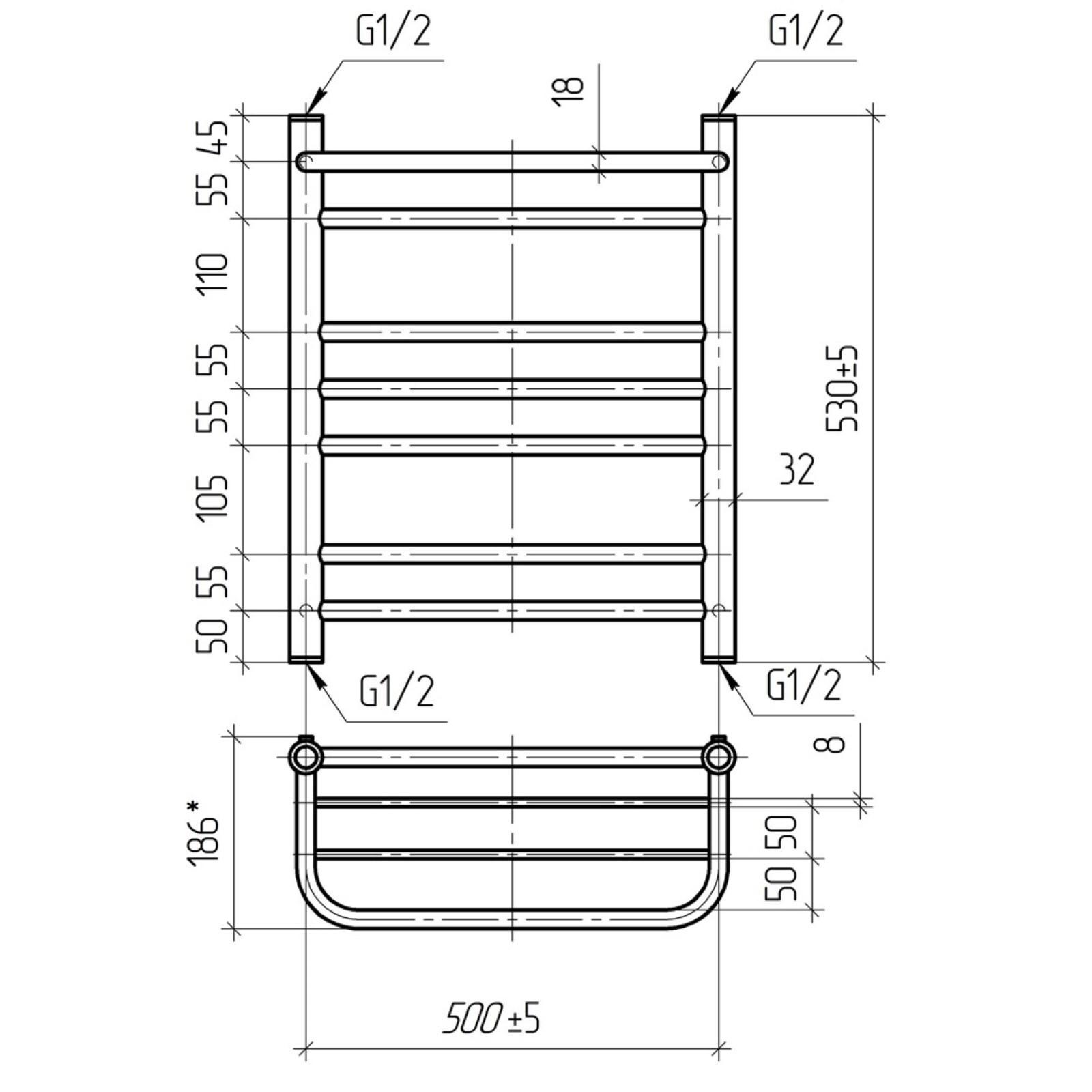 Полотенцесушитель водяной "ТЕРА" БОГЕМА ПСБ-30-06, 500х600 мм, с полкой, хром