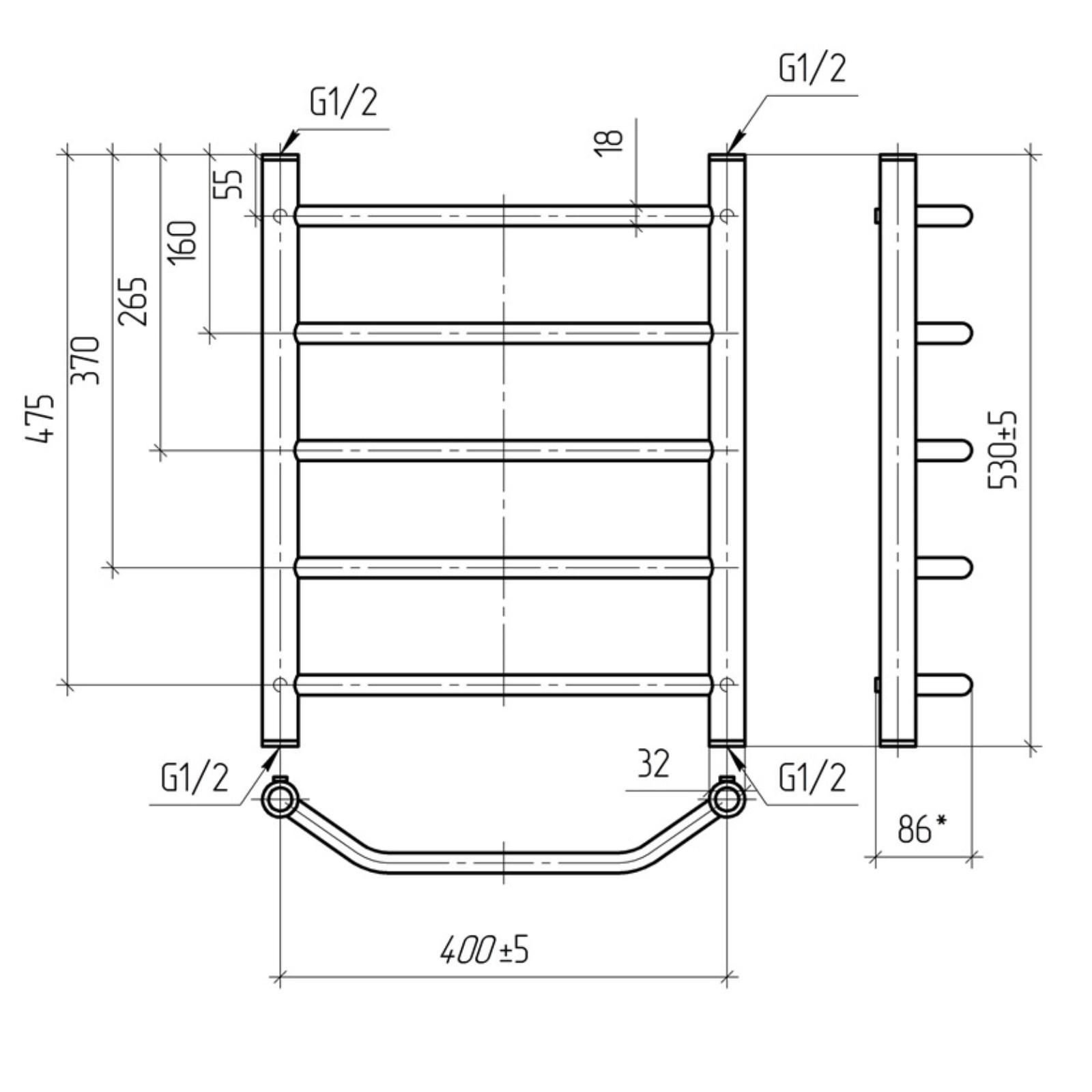Полотенцесушитель водяной "ТЕРА" ВИКТОРИЯ ПСБ-07-02, 400х600 мм, хром