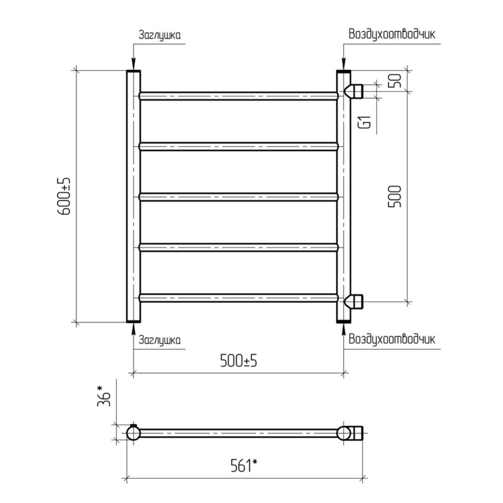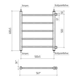 Полотенцесушитель водяной "ТЕРА" КЛАССИКА ПСО-08-02, 500х600 мм, хром