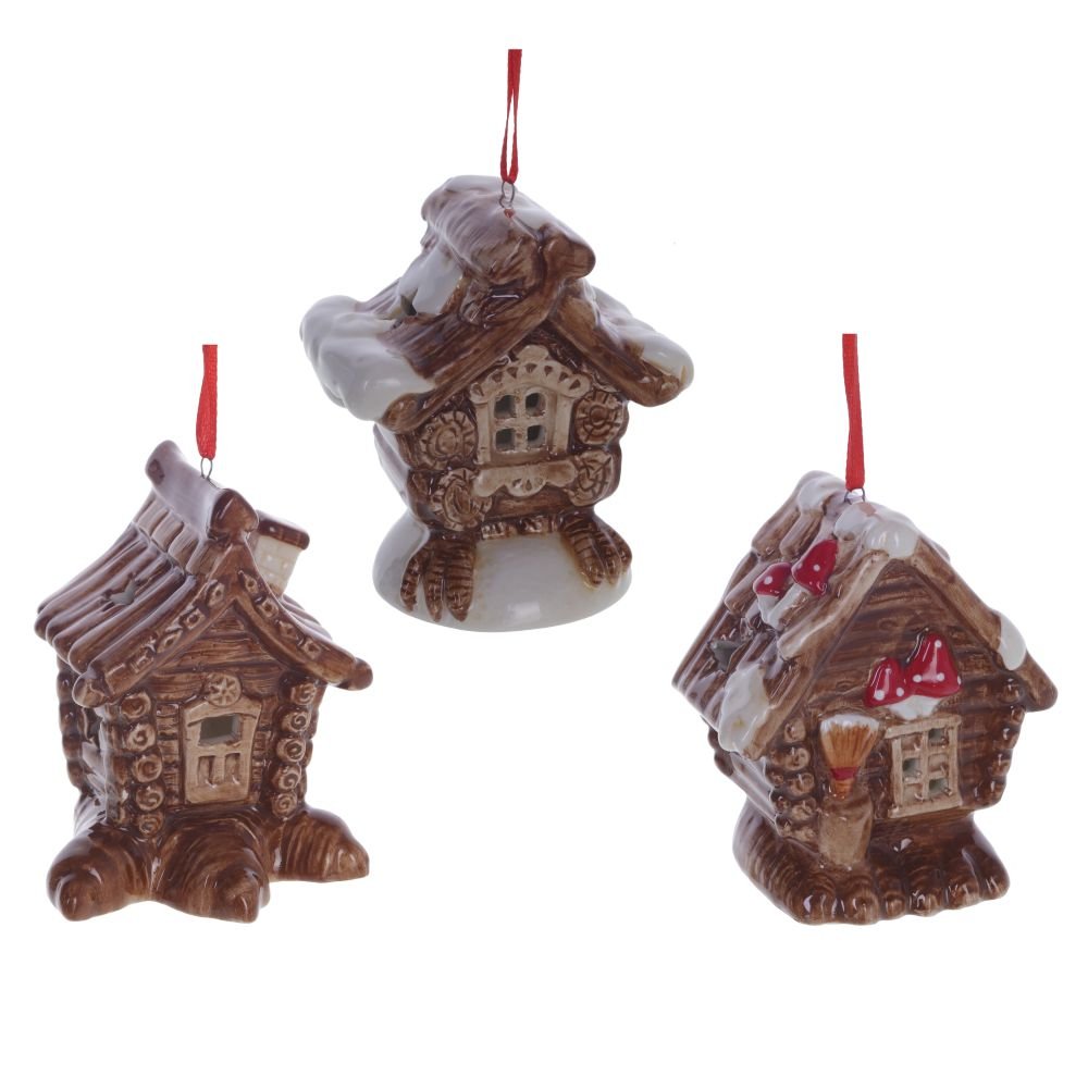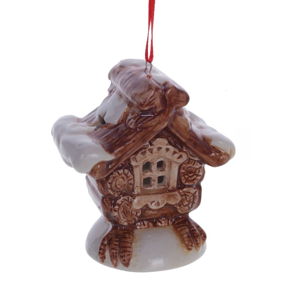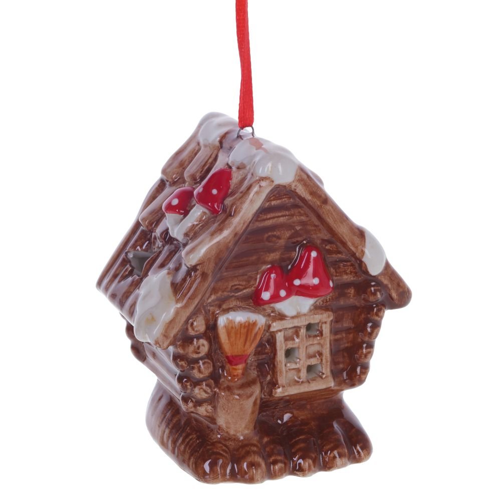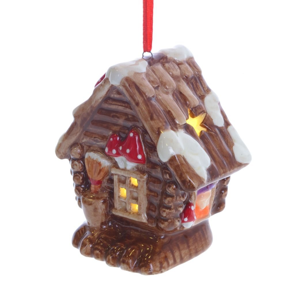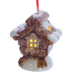Новогодний лес, пушистый снег и где-то под звездным небом, в глубине леса стоит избушка, в окошках которой теплится свет, а значит там сыто, тепло и уютно. Наша керамическое подвесное украшение с подсветкой принесет все это в ваш дом и заставит поверить в чудеса. Питание от двух батареек LR44. Представлено в трех вариантах.