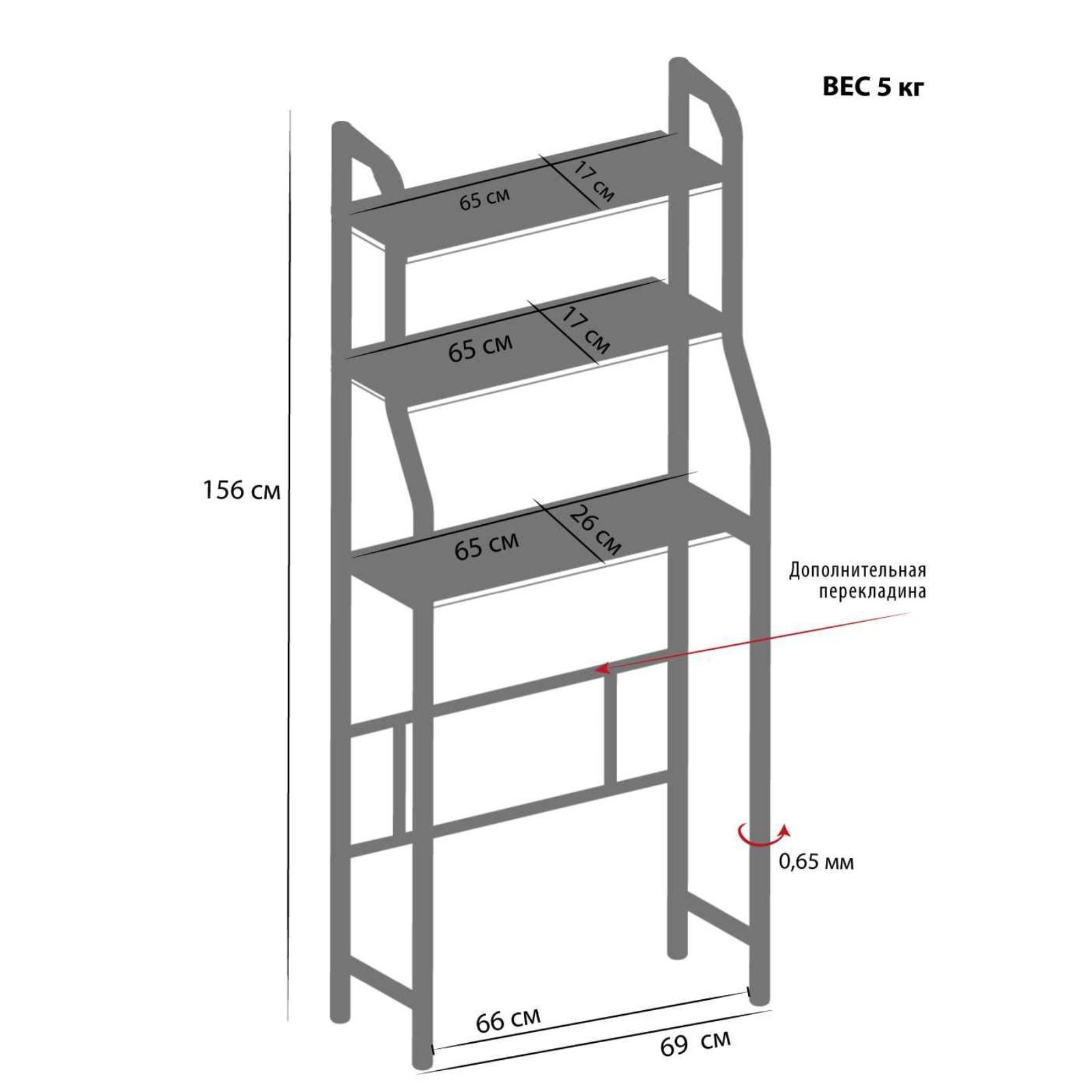 Стеллаж над стиральной машинкой SUPRA CS-B6801, 156х68х26 см, цвет белый