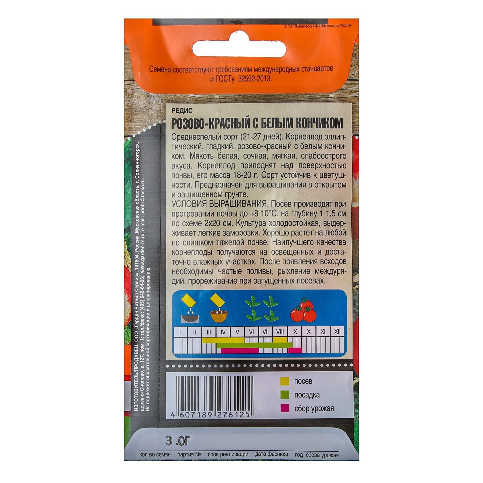 Семена Редис "Розово-красный" с белым кончиком, скороспелый, 3 г