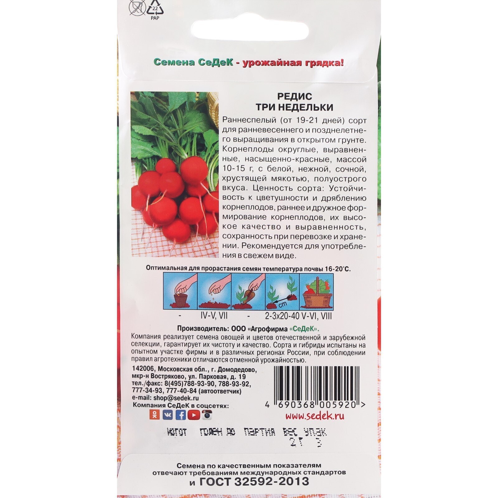Раннеспелый (от 19-21 дней) сорт для ранневесеннего и позднелетнего выращивания в открытом грунте. Корнеплоды округлые, выравненные, насыщенно-красные, массой 10-15 г, с белой, нежной, сочной, хрустящей мякотью, полуострого вкуса. Ценность сорта: Устойчивость к цветушности и дряблению корнеплодов, раннее и дружное формирование корнеплодов, их высокое качество и выравненность, сохранность при перевозке и хранении. Рекомендуется для употребления в свежем виде.
