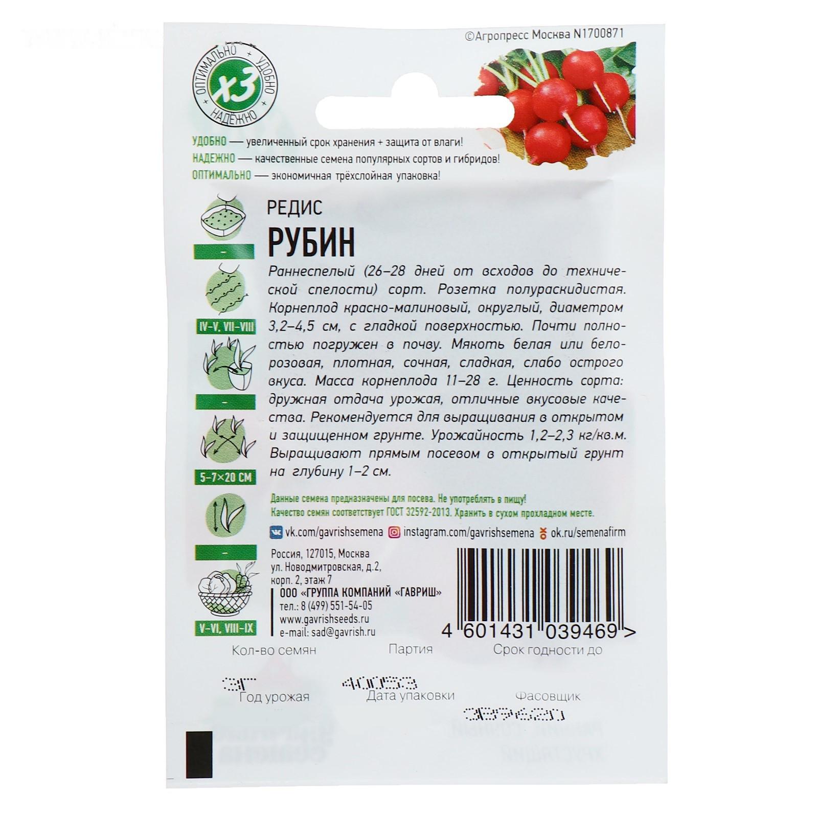 Семена Редис "Рубин", 3 г серия ХИТ х3