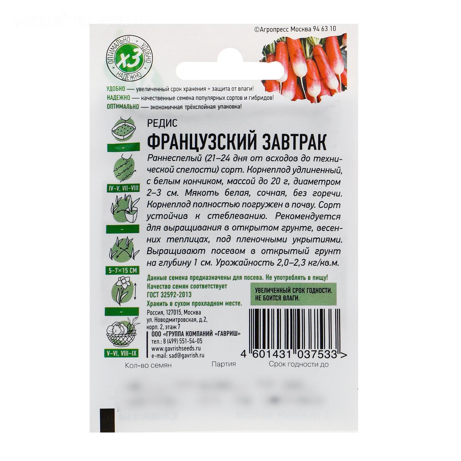 Семена Редис "Французский завтрак", 2 г