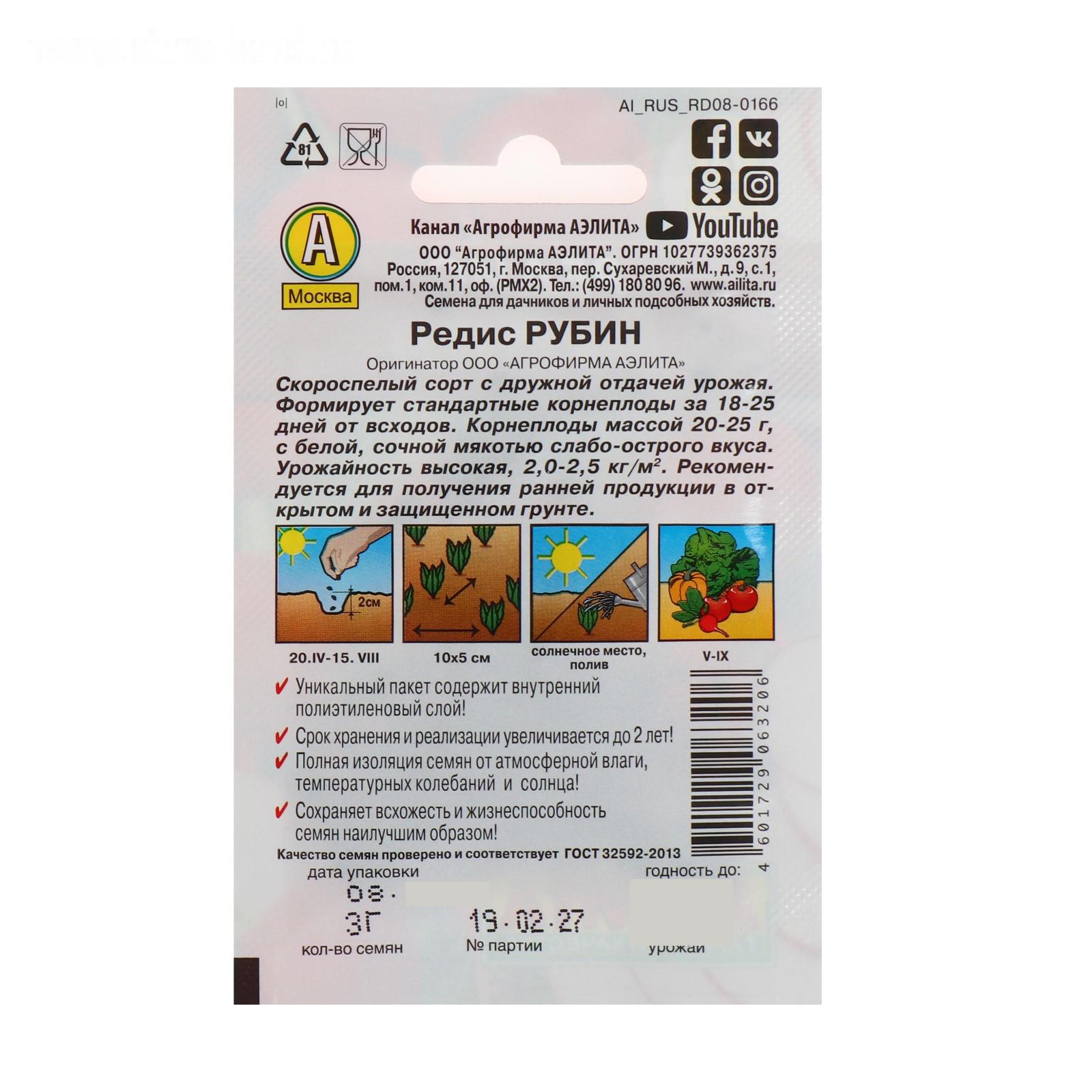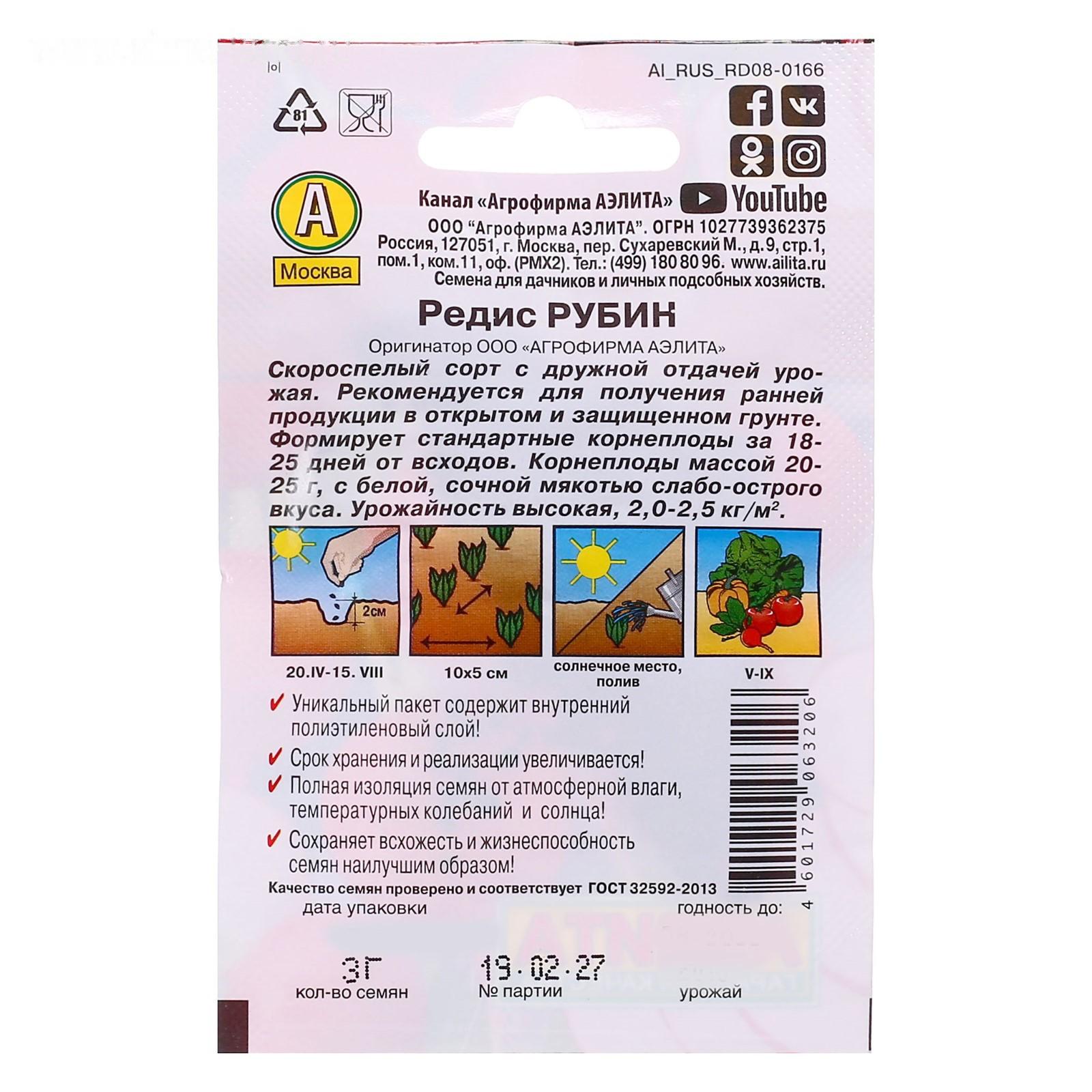 Семена Редис "Рубин" "Лидер", 3 г ,