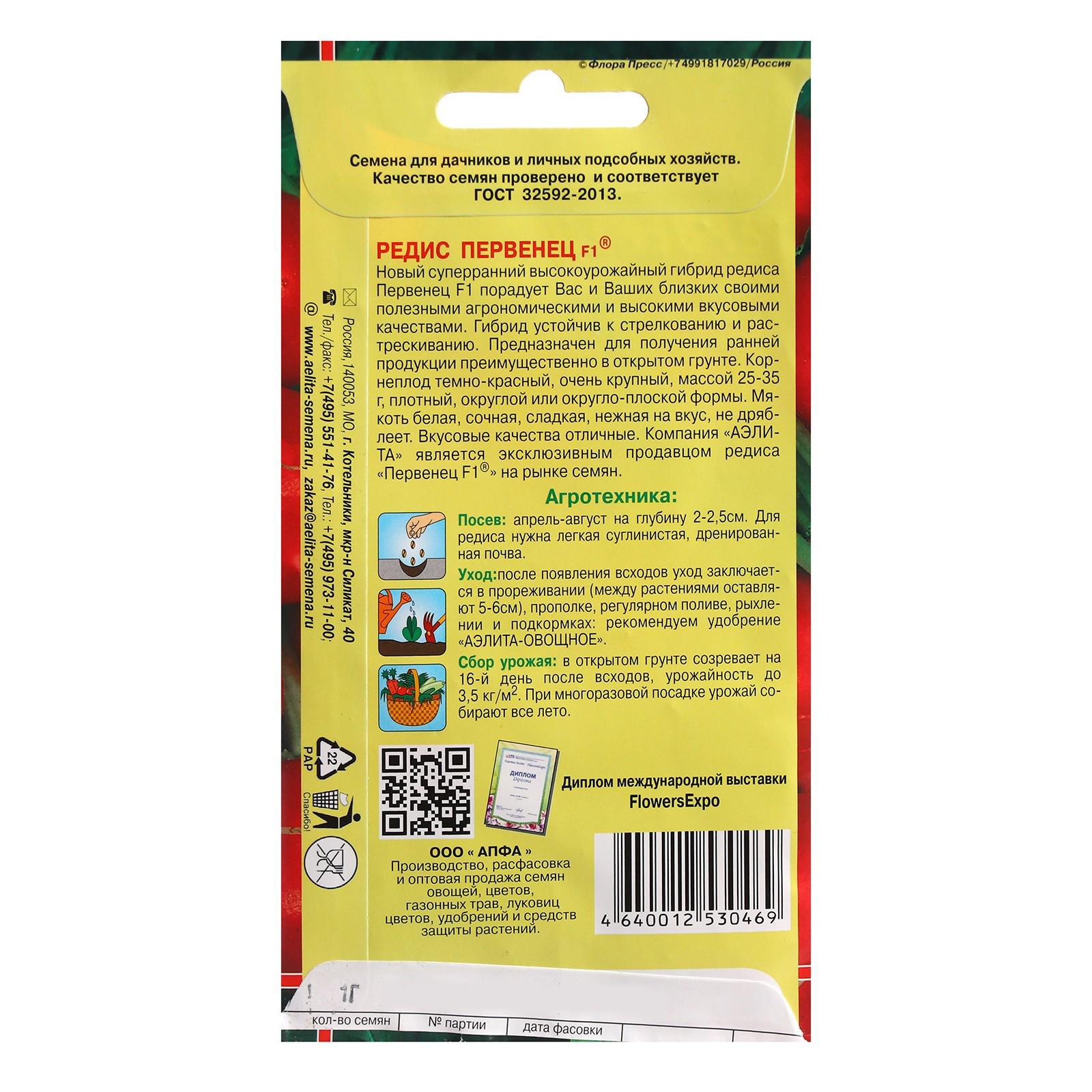 Семена Редис "Первенец", F1, 1 г