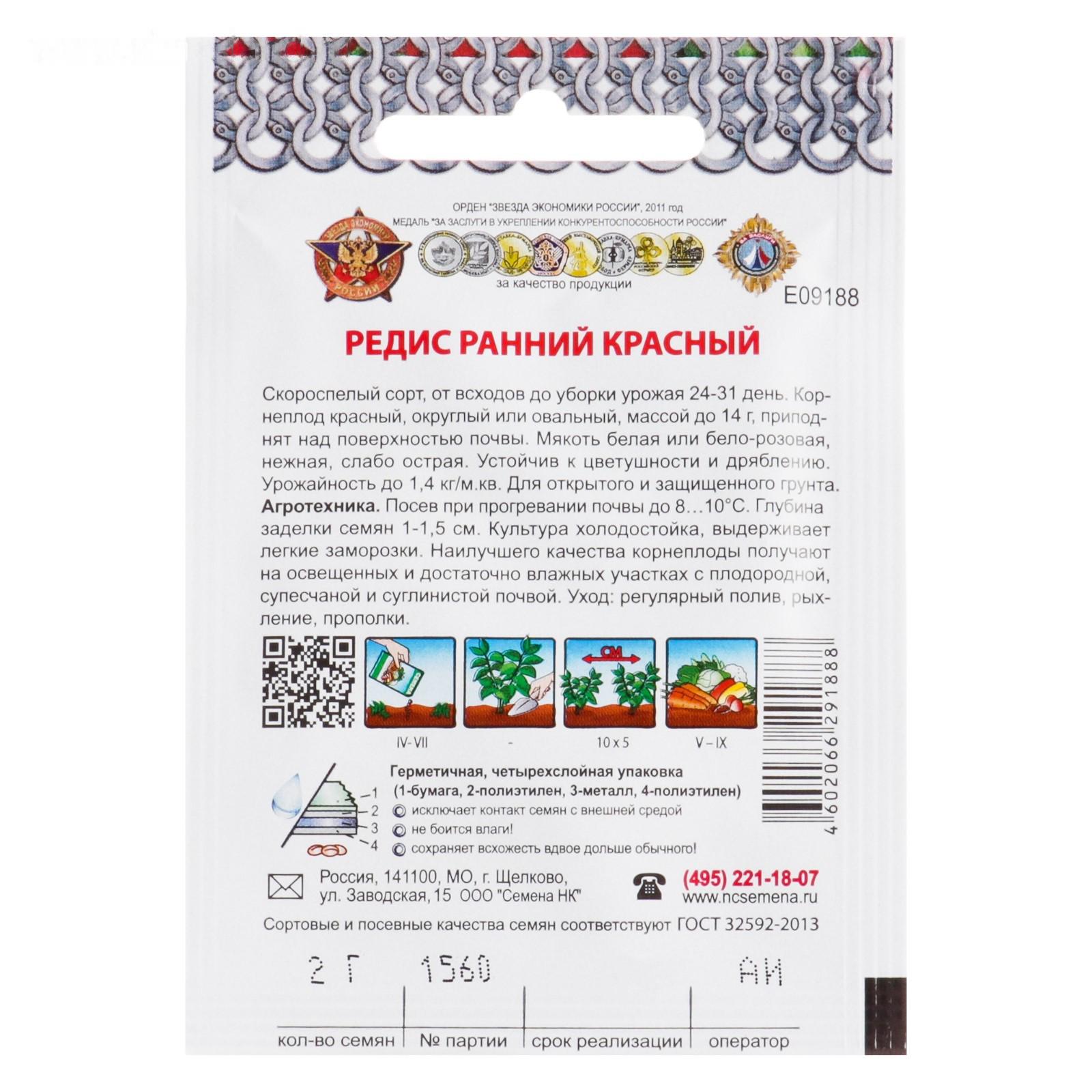 Семена Редис "Ранний красный" серия Кольчуга, 2 г