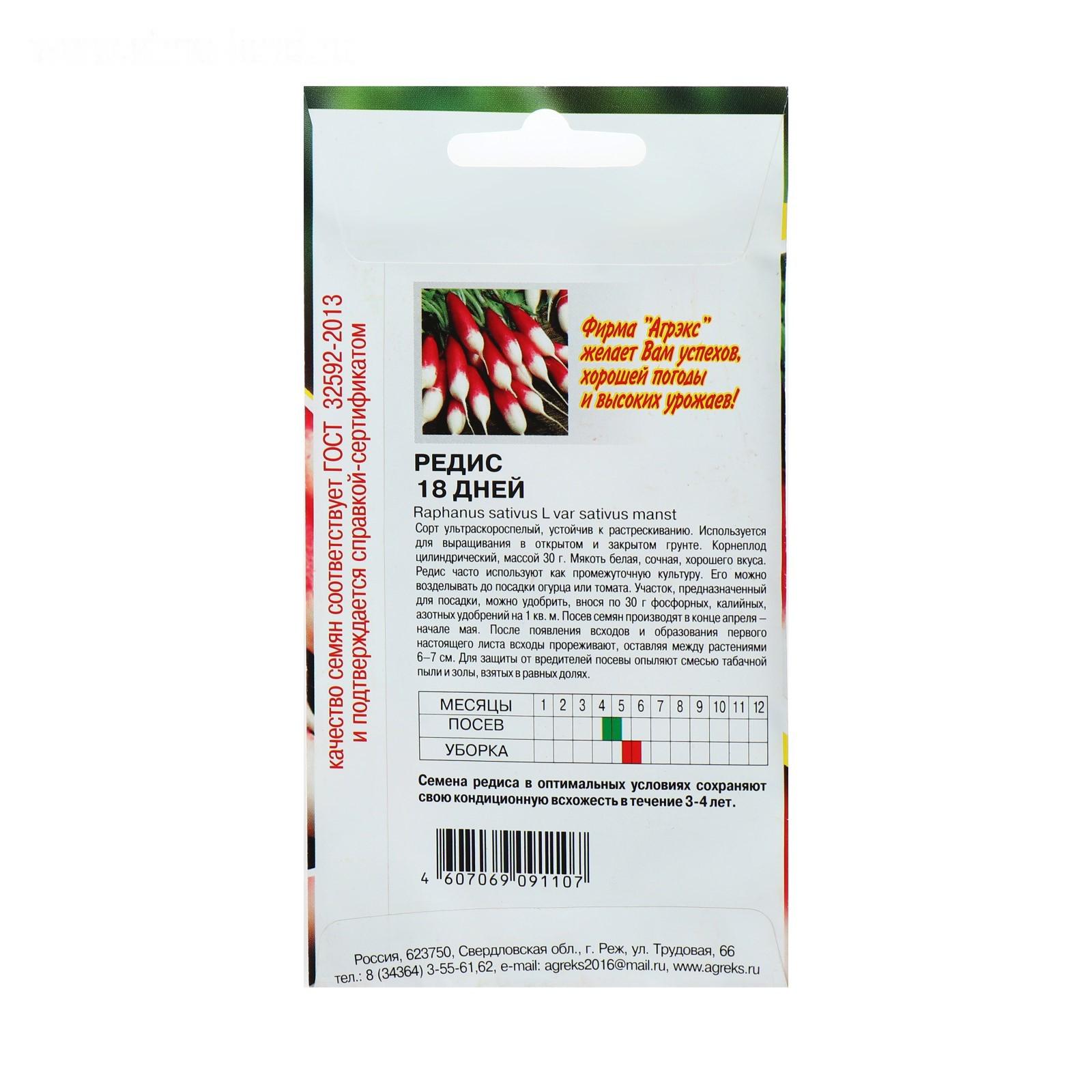 Скороспелый (18-20 дней от всходов до технической спелости), урожайный сорт. Корнеплод удлиненно-цилиндрический с розовой верхней частью и белым кончиком. Мякоть белая, плотная, слабоострая. Масса товарного корнеплода 17 г. Ценность сорта: скороспелость, дружное формирование корнеплодов, высокий выход товарной продукции и отличные вкусовые качества. Выращивают прямым посевом в открытый грунт.