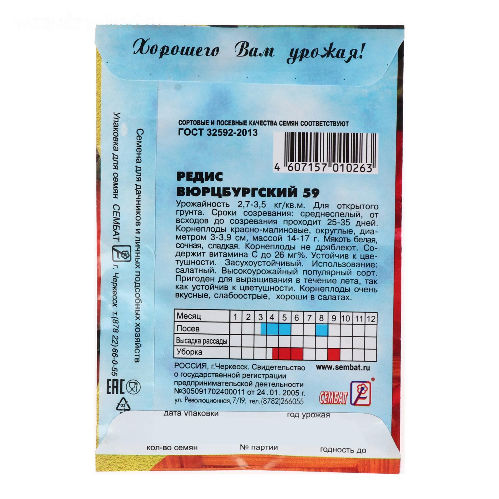Семена Редис "Вюрцбургский 59", 3 г
