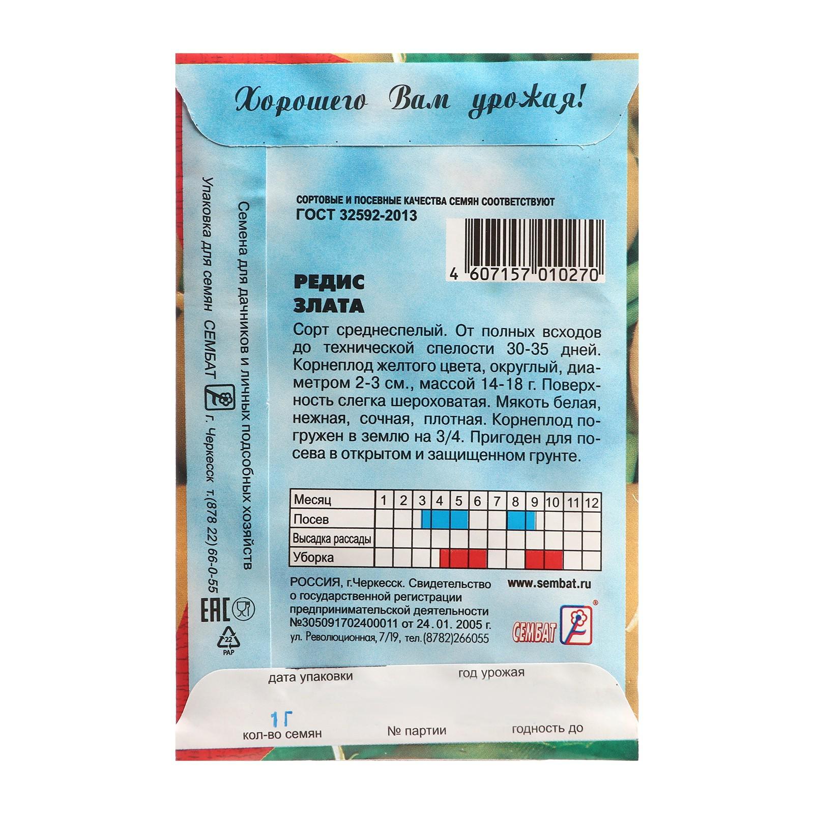 Семена Редис "Злата", 1 г