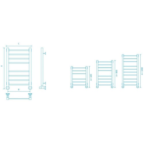 Полотенцесушитель Маргроид Вид 81/10 профильный, перекладины 50х10 с полкой, нижнее подключение, форма - лесенка.