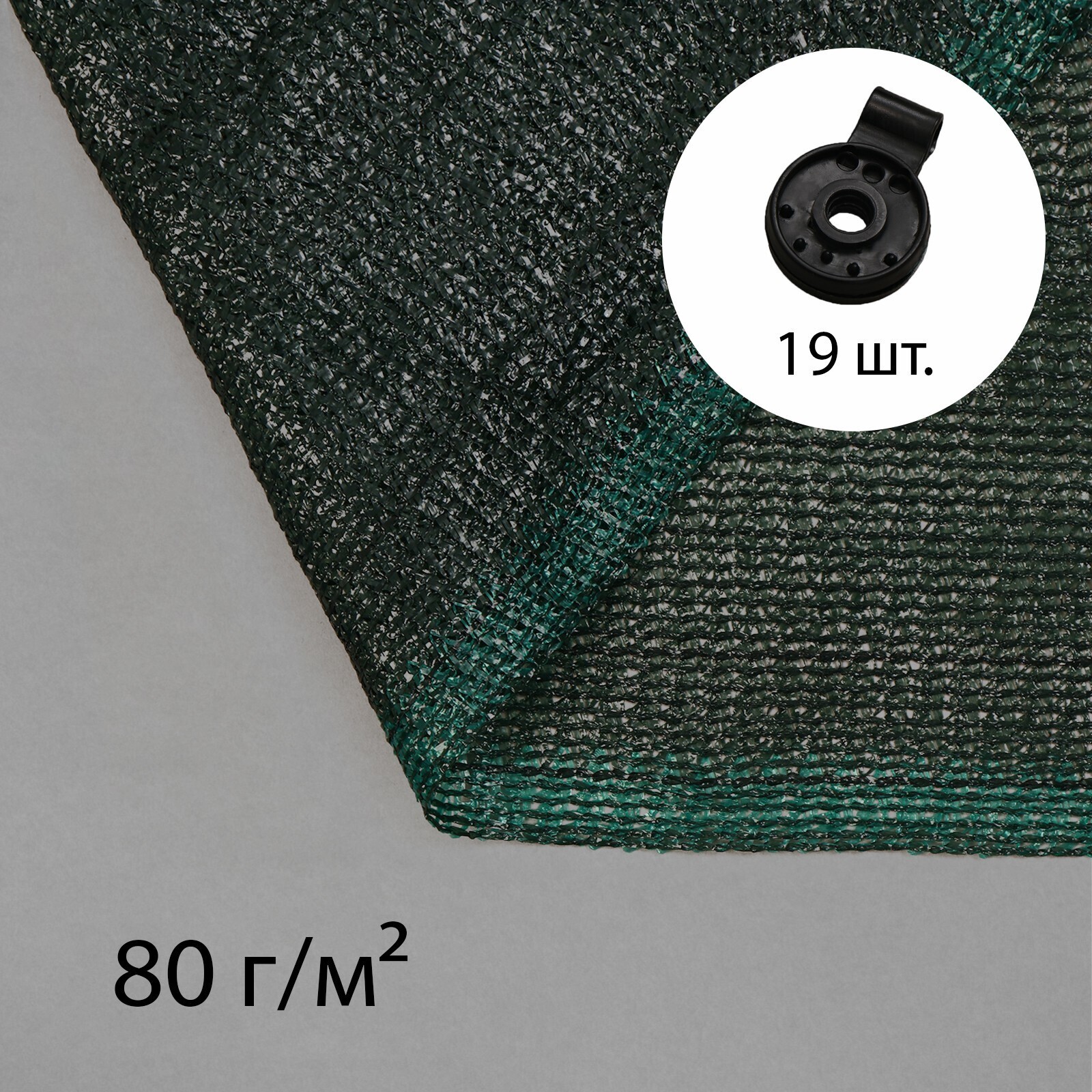Сетка 4 х 5 м затеняющая, плотность 80 гр/м2, набор 19 клипс, зеленная