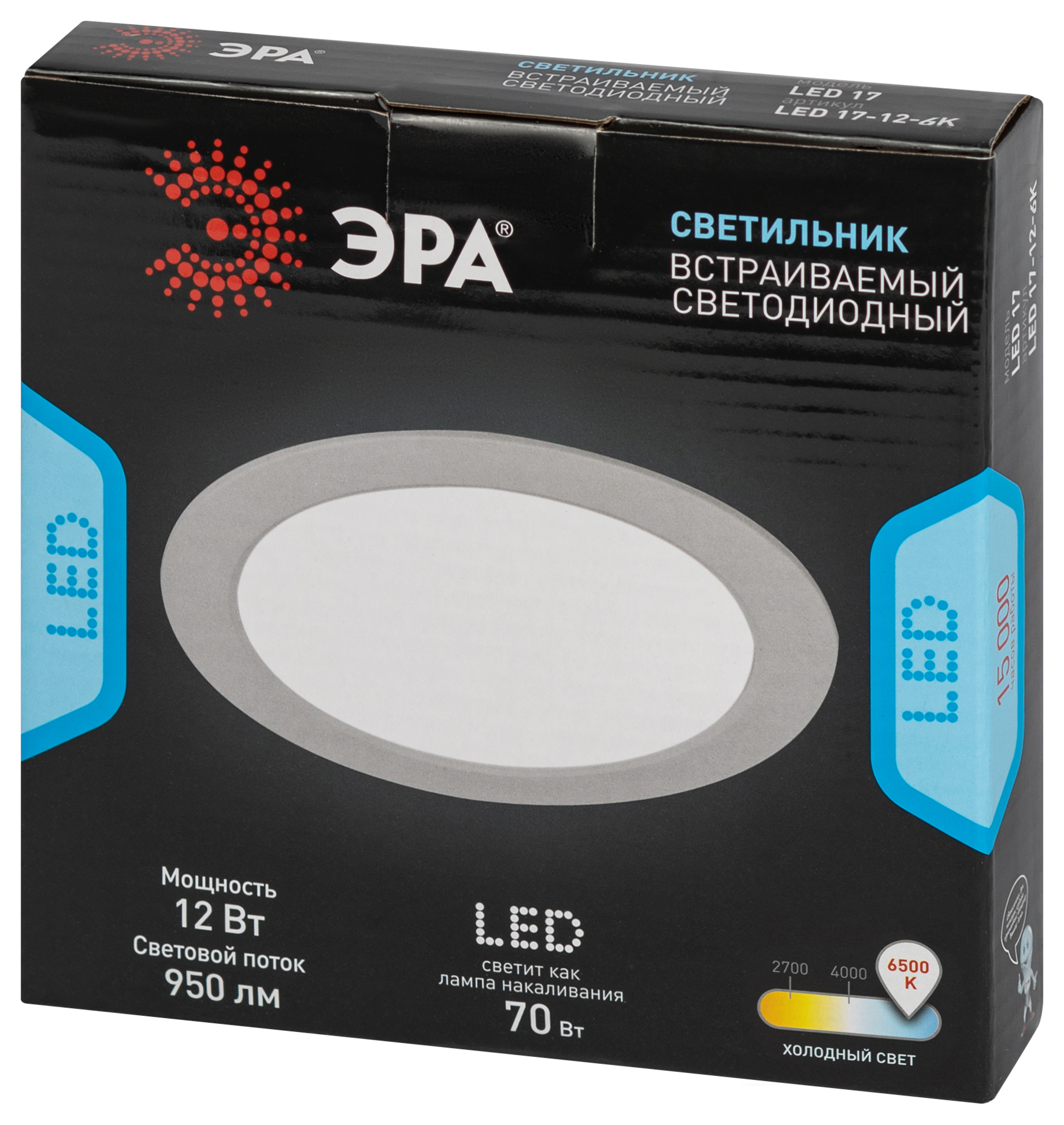 Светильник светодиодный встраиваемый ЭРА LED 17-12-6K круглый 12Вт 6500К