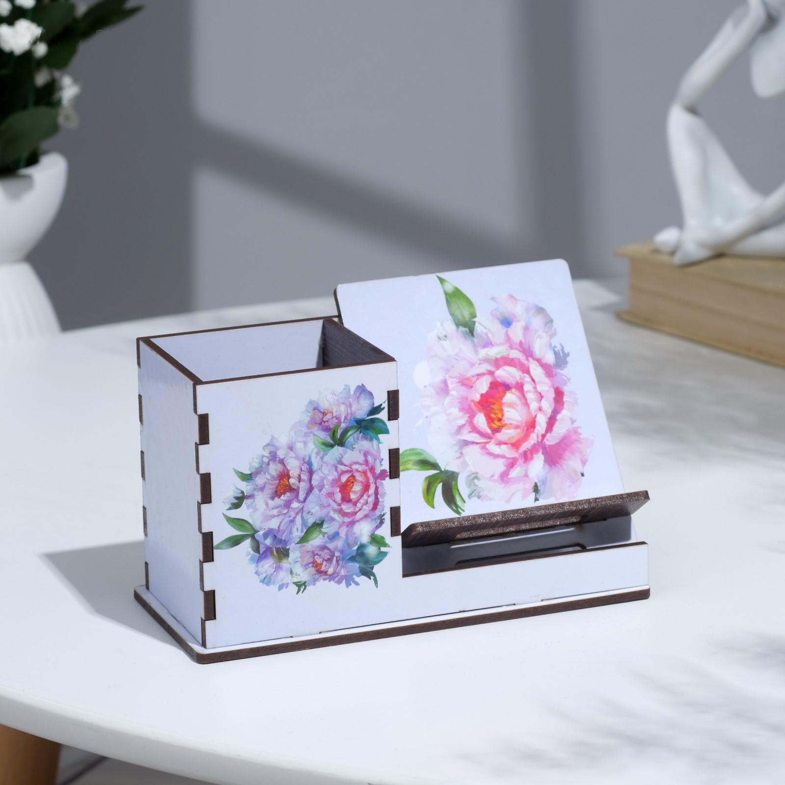 Органайзер и подставка под телефон "Цветы", 14,5х9х7 см