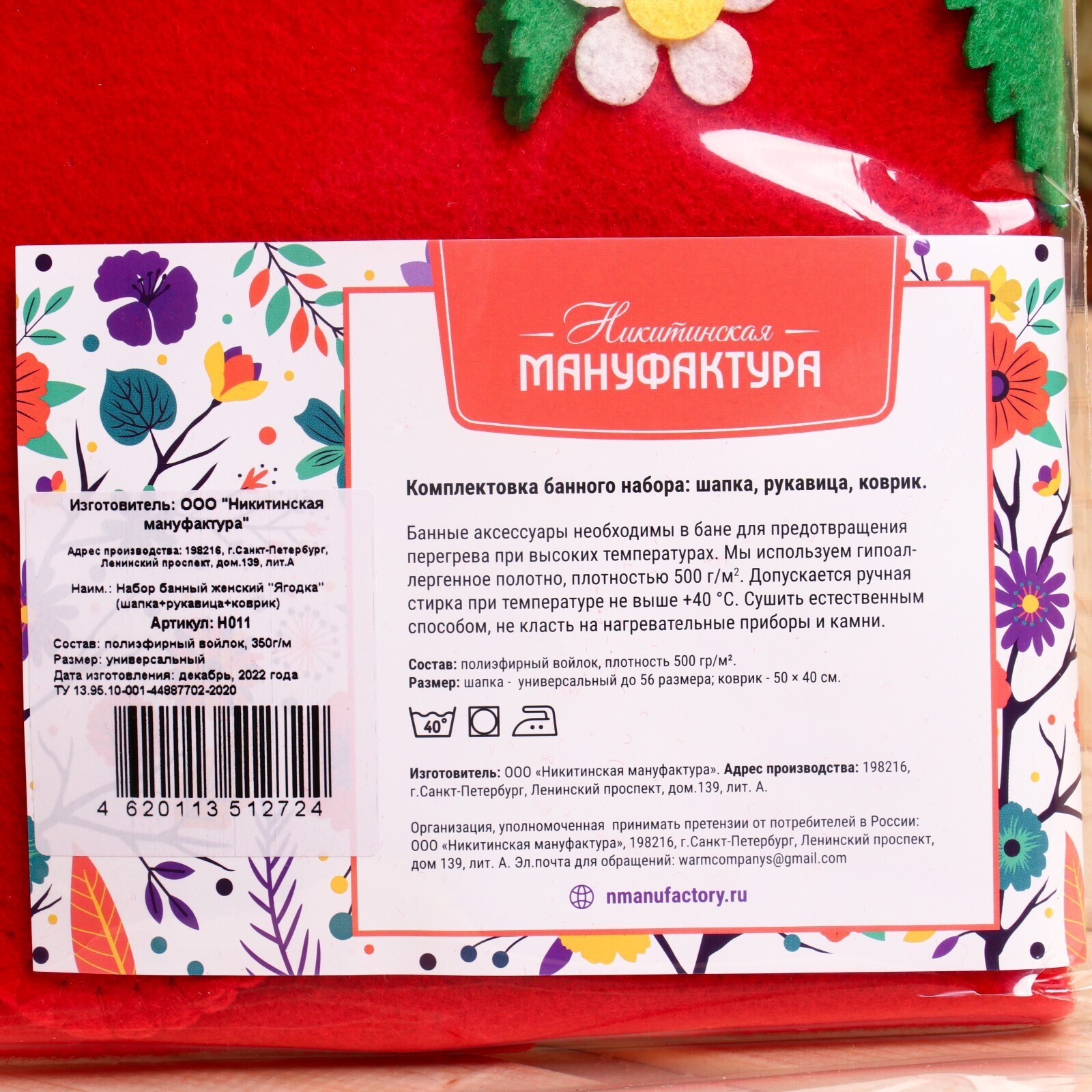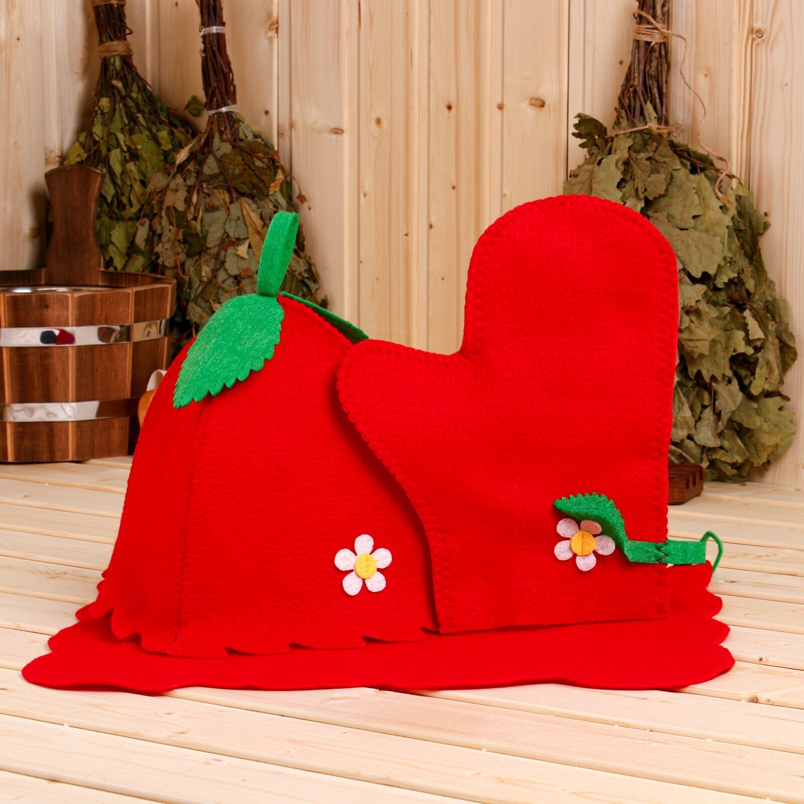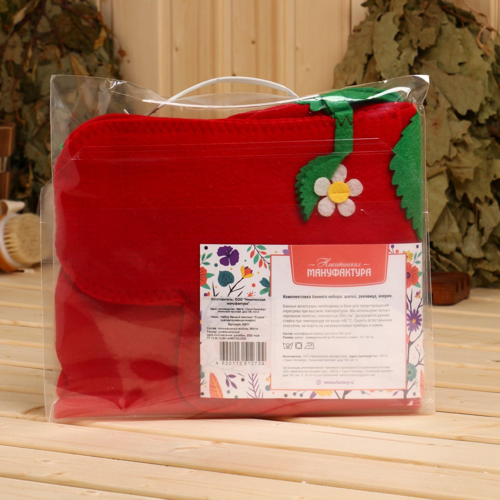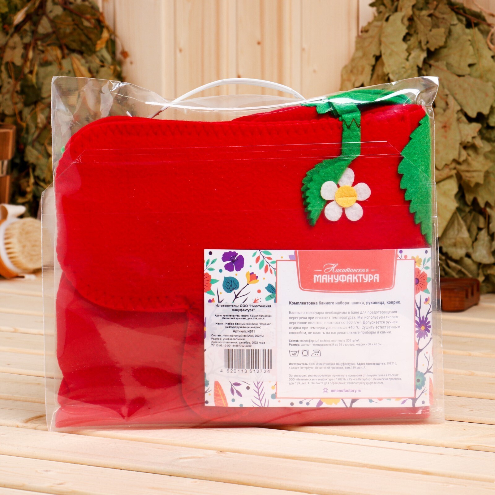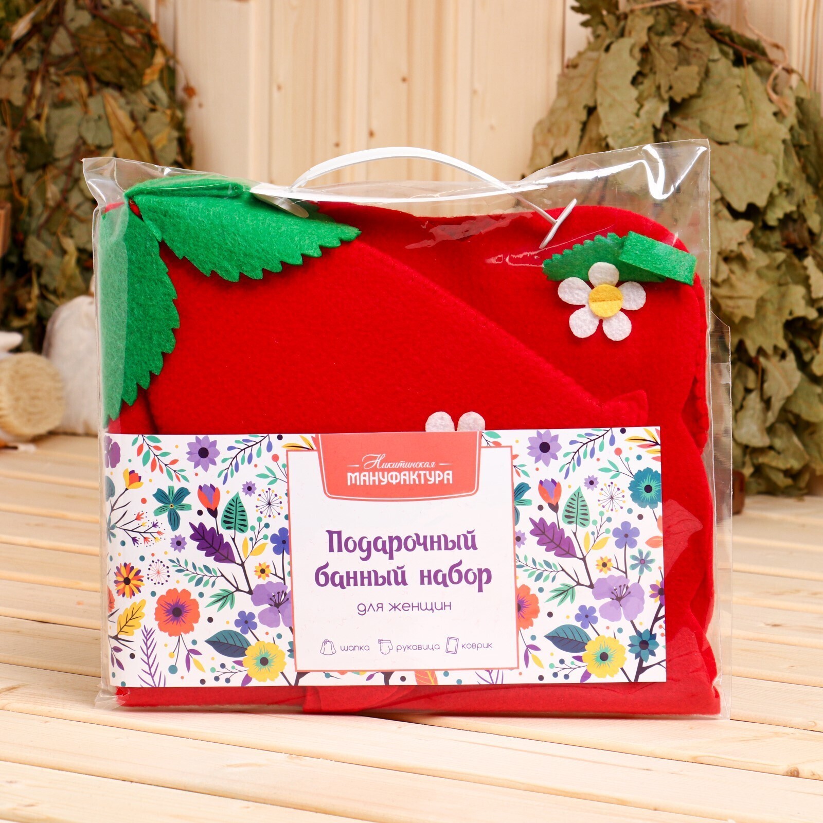 Набор банный женский "Ягодка" (шапка+рукавица+коврик)