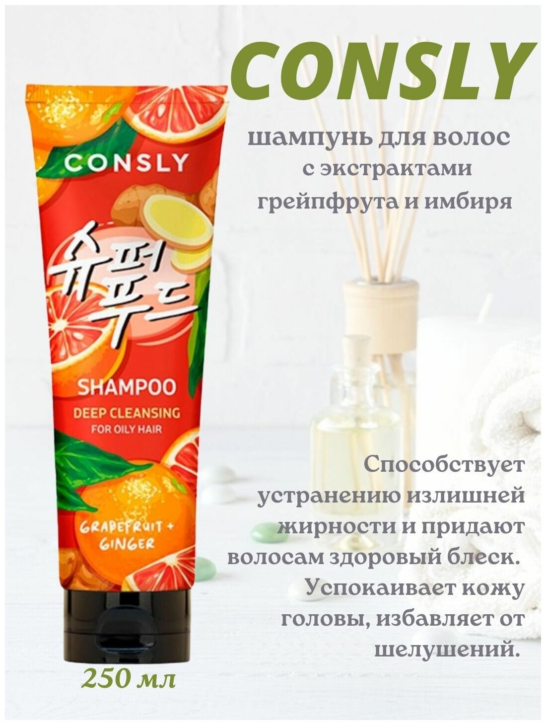 Описание товара Глубоко очищающий шампунь Consly с экстрактами грейпфрута и имбиря, 250мл