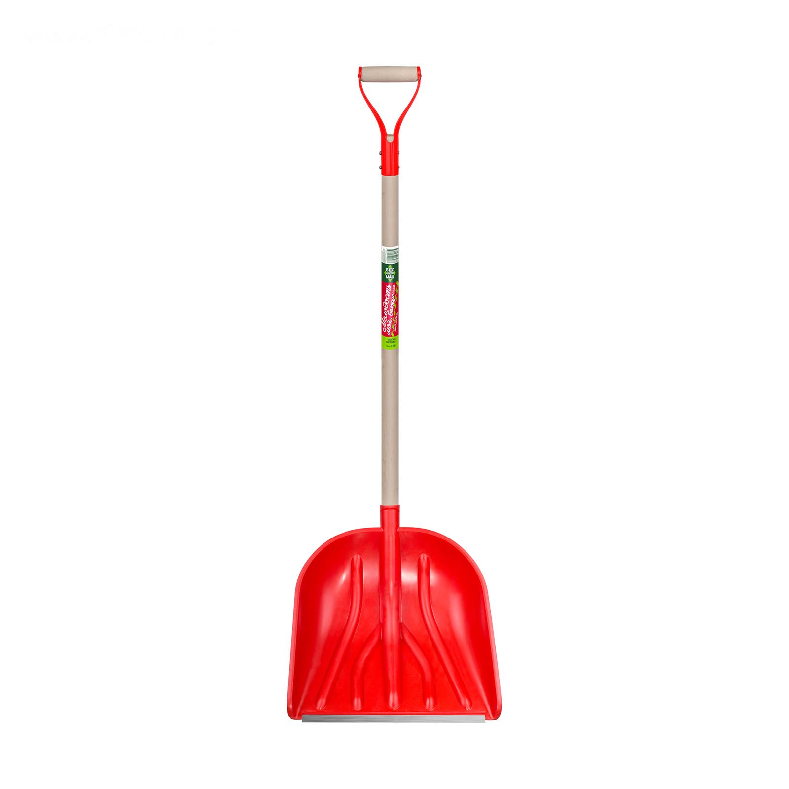 Лопата пластиковая, ковш 405 × 420 мм, с металлической планкой, деревянный черенок, с ручкой