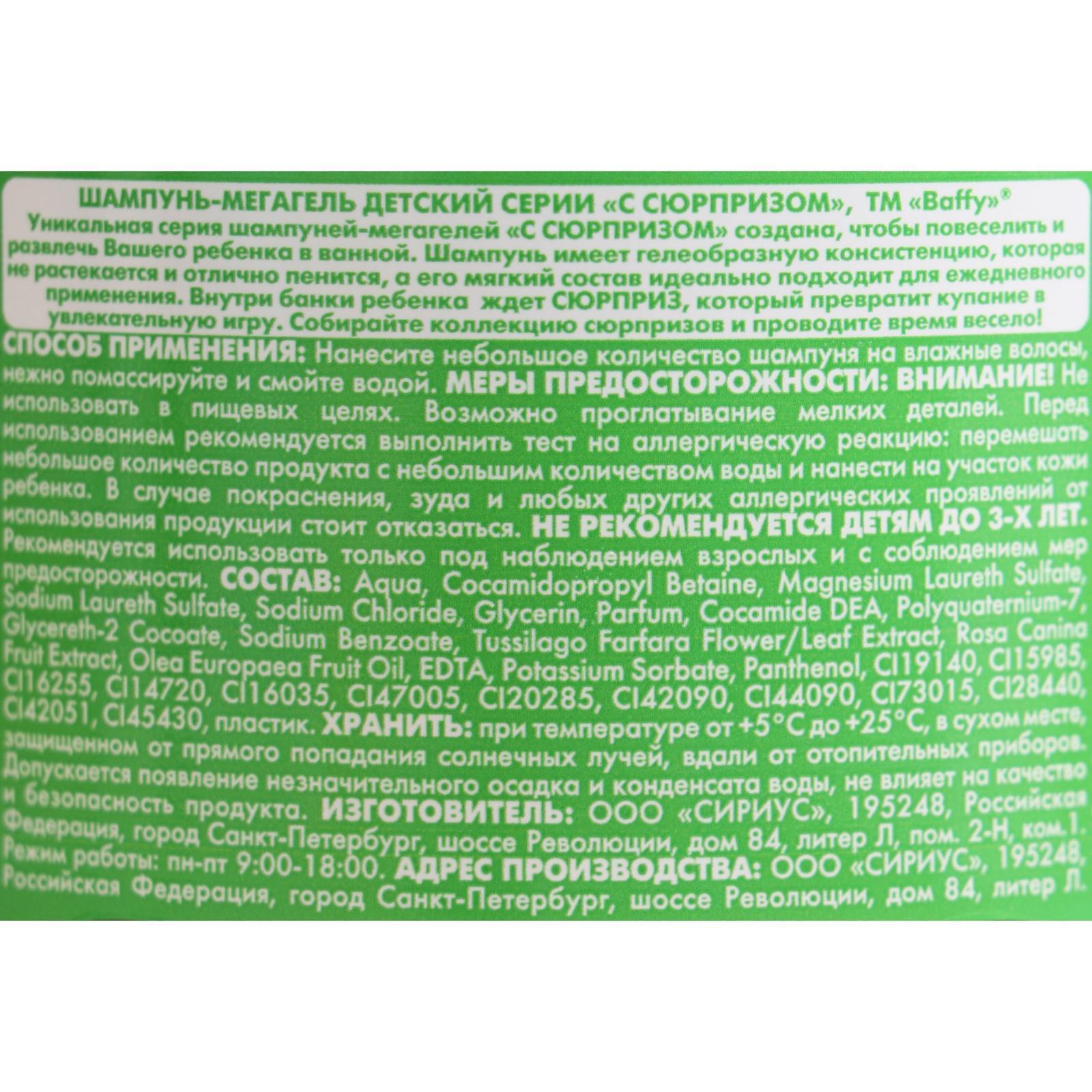 Шампунь-мегагель Baffy, детский, с сюрпризом, спелая малина, 300 мл