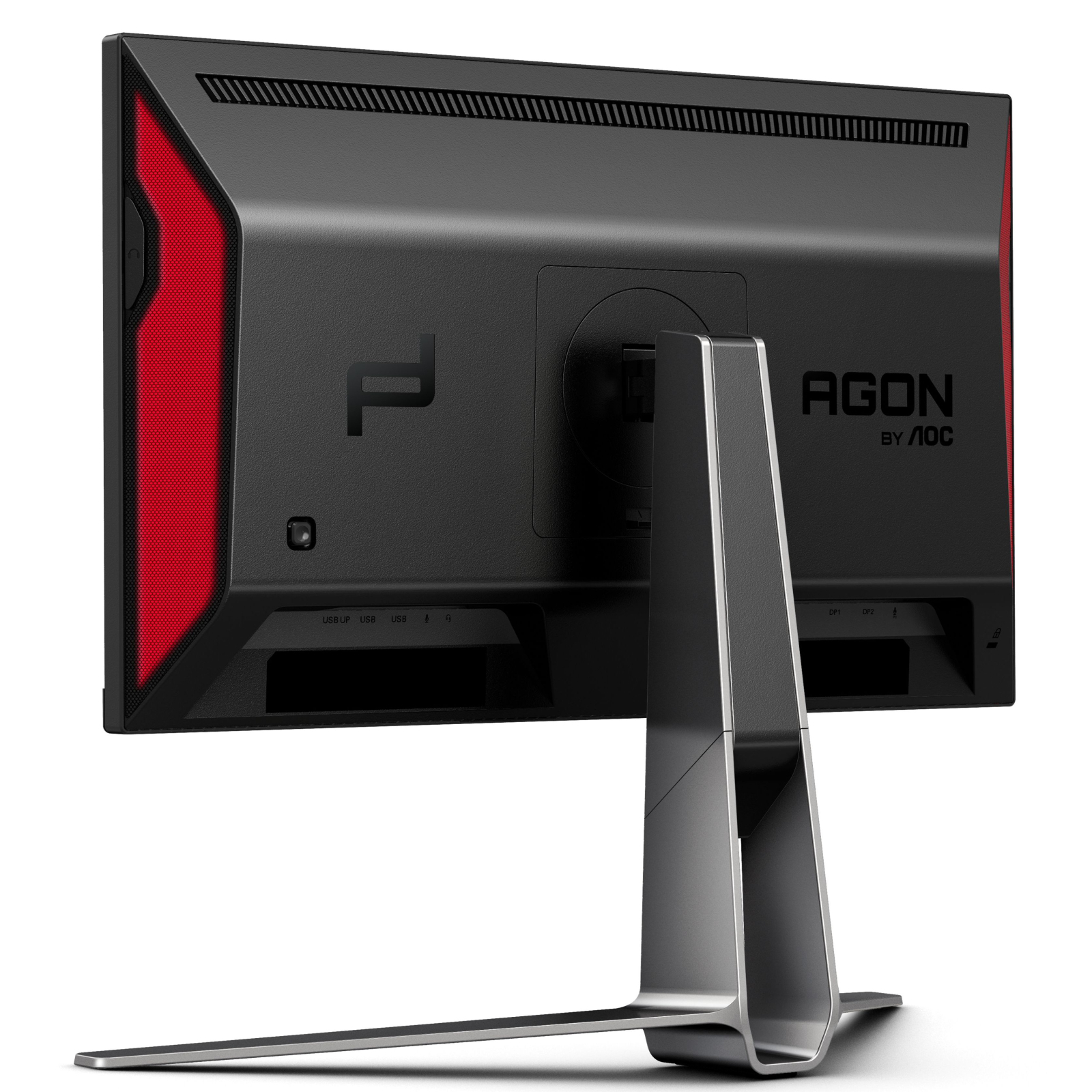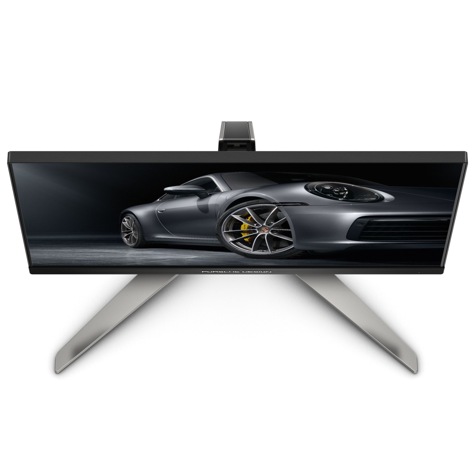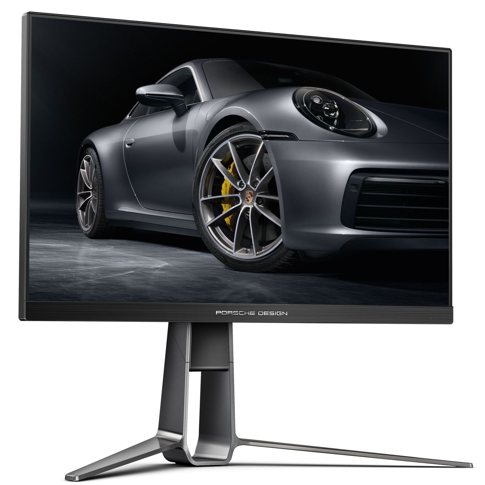 Porsche Design AOC Agon Pro PD27S — це безперечно спортивний автомобіль серед ігрових моніторів. Монітор встановлюється на підставку, натхненням для дизайну якої стало кермо Porsche. Його динамічний стиль поєднується із вражаючими можливостями для гри.