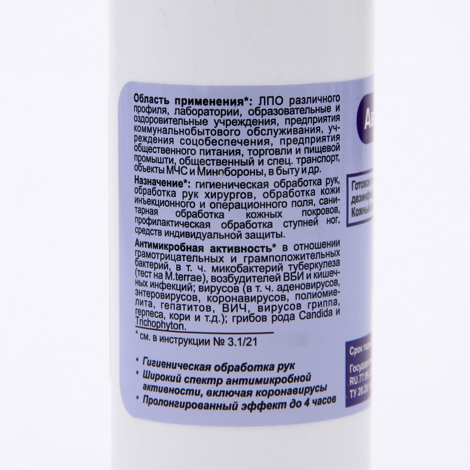Для гигиенической обработки рук и обработки рук хирургов, обработки кожи инъекционного и операционного поля, локтевых сгибов доноров, санитаризации кожных покровов, профилактической обработки ступней ног и обеззараживания СИЗ.