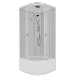 Усиленный поддон сделан из акрила, обладает нагрузкой до 300 кг. Поддон состоит из трёх слоёв: антискользящее покрытие, акрил, волокно. Чаша закреплена на железном армированном каркасе с усиленными ножками, поэтому поддон не трещит, не скрипит, не прогибается под ногами. Высота от пола до кромки верхнего бортика составляет 40 см, внутренняя глубина чаши — 28 см. Кабина комплектуется сифоном. Передняя панель съёмная.